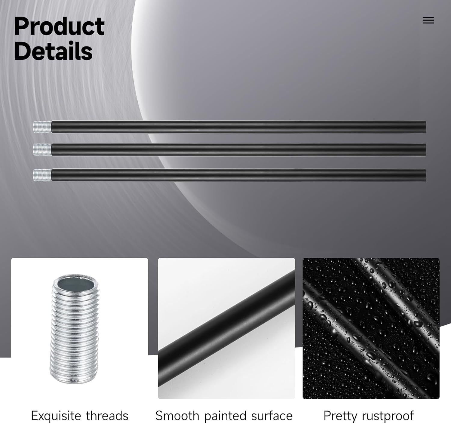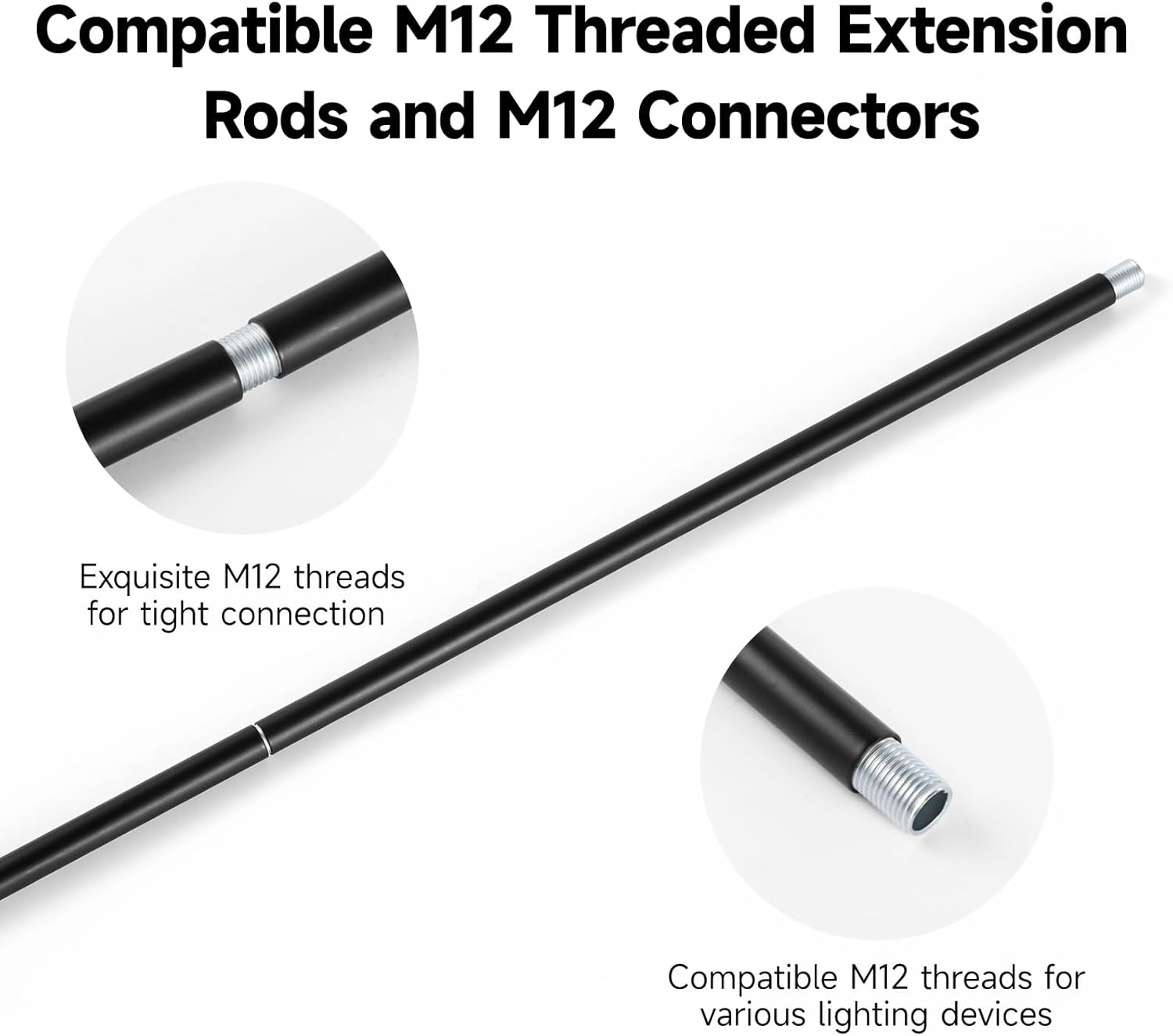 Color: black Material: metal Product size: length: 11.8 inches Package Includes: Threaded Extension Rod x 10 Note: - Please refer to the measurement. Tiny measuring error is allowable in normal range. - There might be a little color difference due to the monitor, camera or other factors, please refer to the physical item.