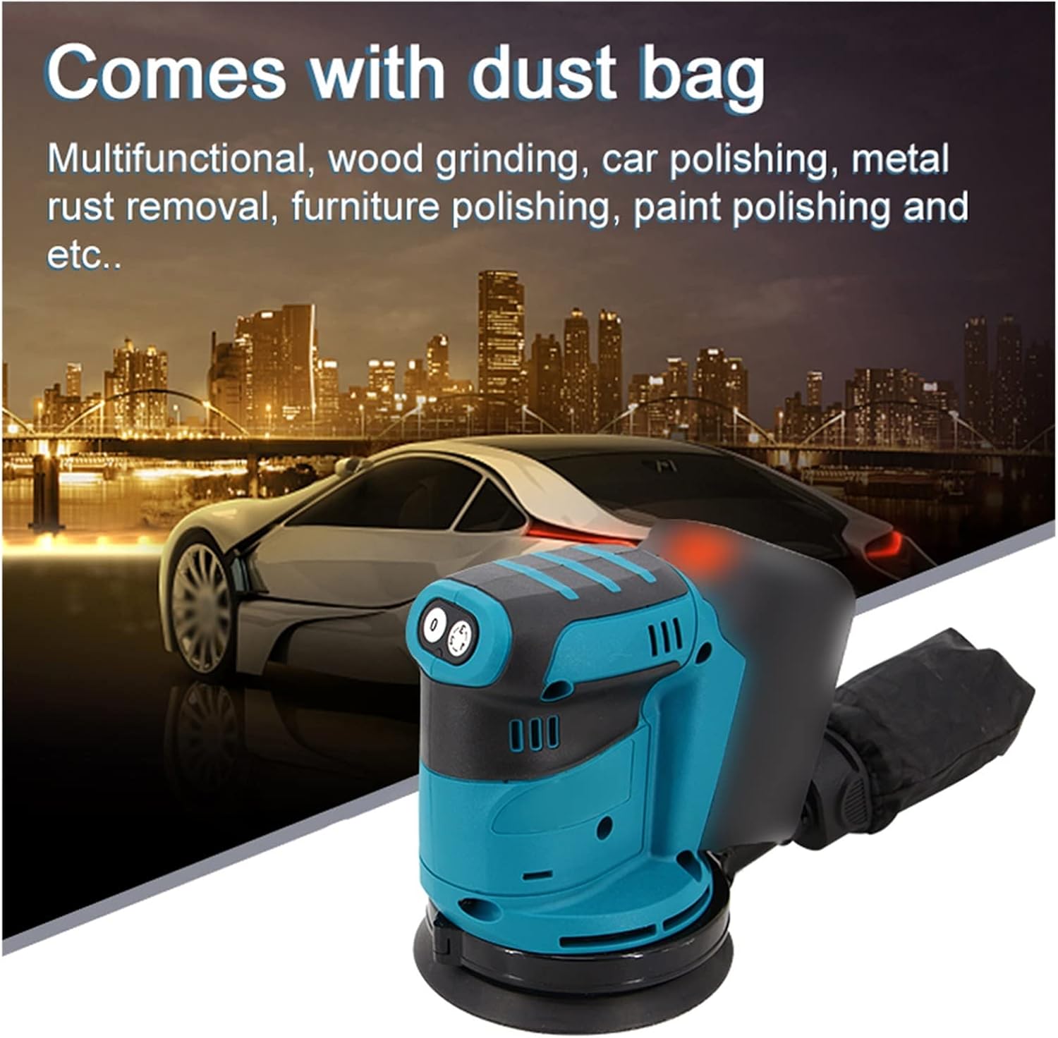 Features:- Dust-s ealed switch and bearing designed for longer tool service time.- Comes with dust bag, so that the debris generated during grinding or polishing will be free from splashing and more safer.- Efficient through-the-pad dust collection system for a cleaner work environment.- Multifunctional, wood grinding, car polishing, metal rust removal, furniture polishing, paint polishing and etc..- Wide applications, suitable for auto repairing factory, wood furniture factory, iron factory, construction site, home decoration and etc..Specifications:Name: Electric PolisherMaterial: plasticsBattery: compatible with 18V M akita battery(not included)Speed: 7000/9500/11000rpm adjustableApplicable sandpaper: 125mm diameterPower: 90WItem size: 175 * 160 * 120mm / 6.89 * 6.30 * 4.72inItem weight: 1120g / 2.47lbPackage size: 185 * 168 * 122mm / 7.28 * 6.61 * 4.80inPackage weight: 1200g / 2.65lbPacking List:1 * Electric Polisher Host
