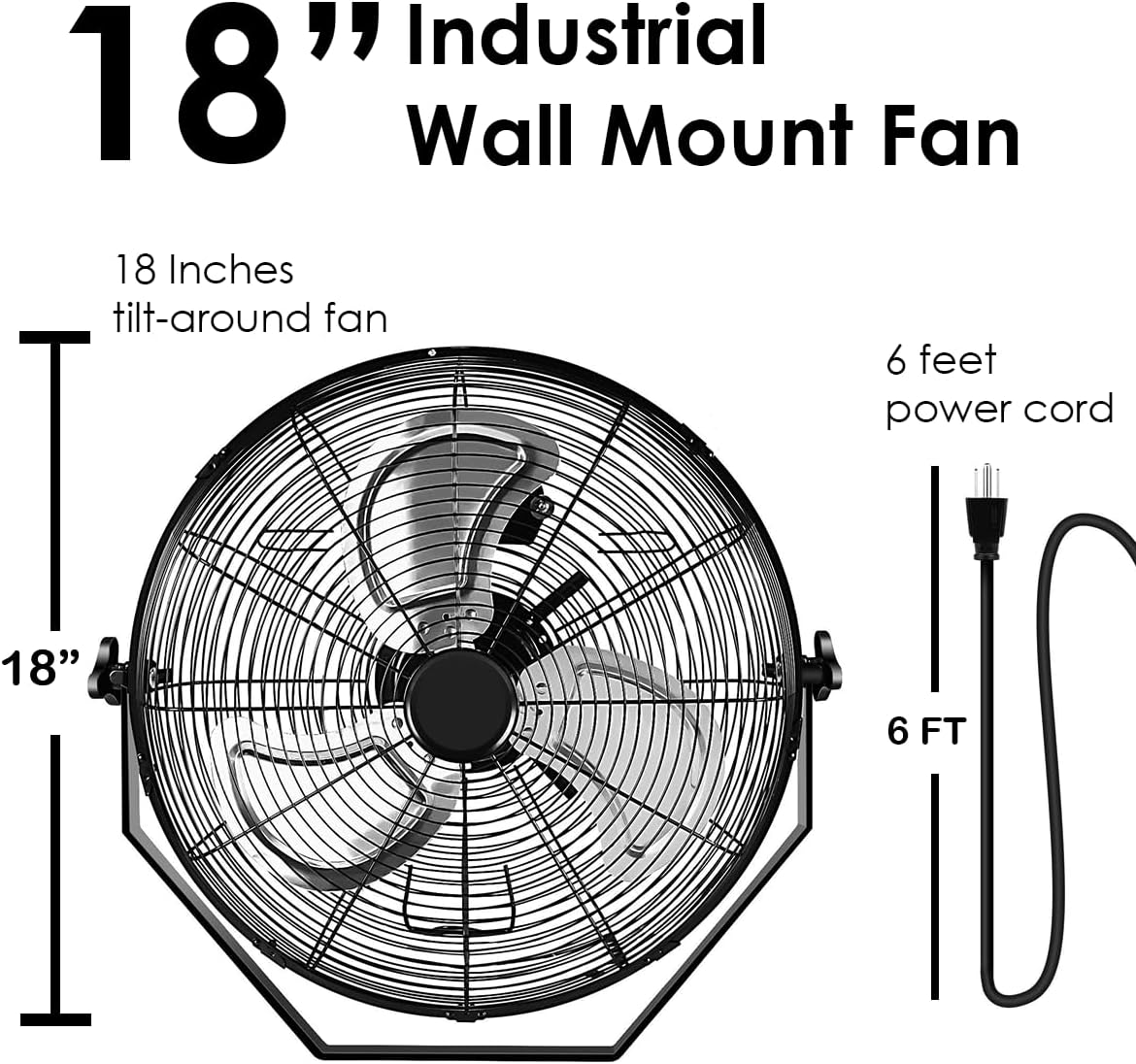 Dithoko 18 in. Black Industrial Wall Mount Fan 3-Speed Indoor/OutdoorCommercial Ventilation Metal High Velocity Fan SpecificationMaterial: MetalColor: BlackProduct Size: 7.28"L x 18"W x 22.05"HProduct Weight (lbs.): 12.89Package Size: 7.28"L x 18"W x 22.05"HPackage Weight (lbs.): 13