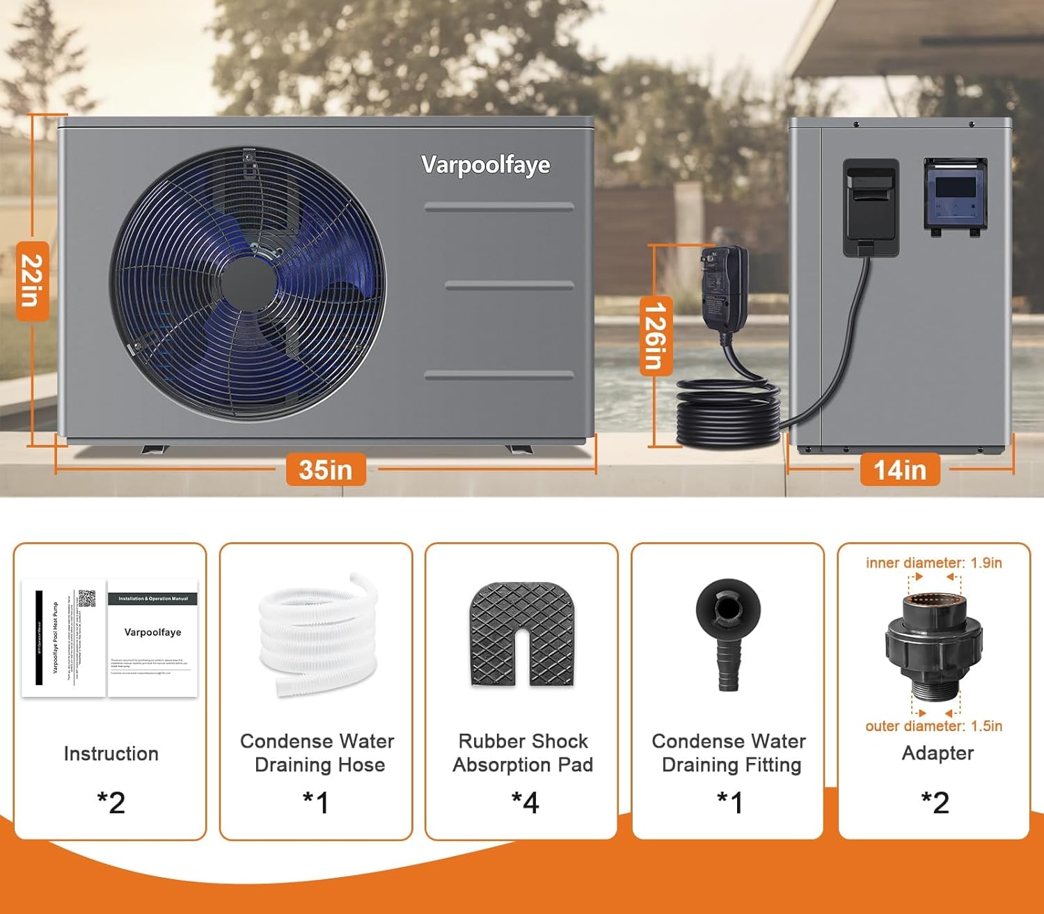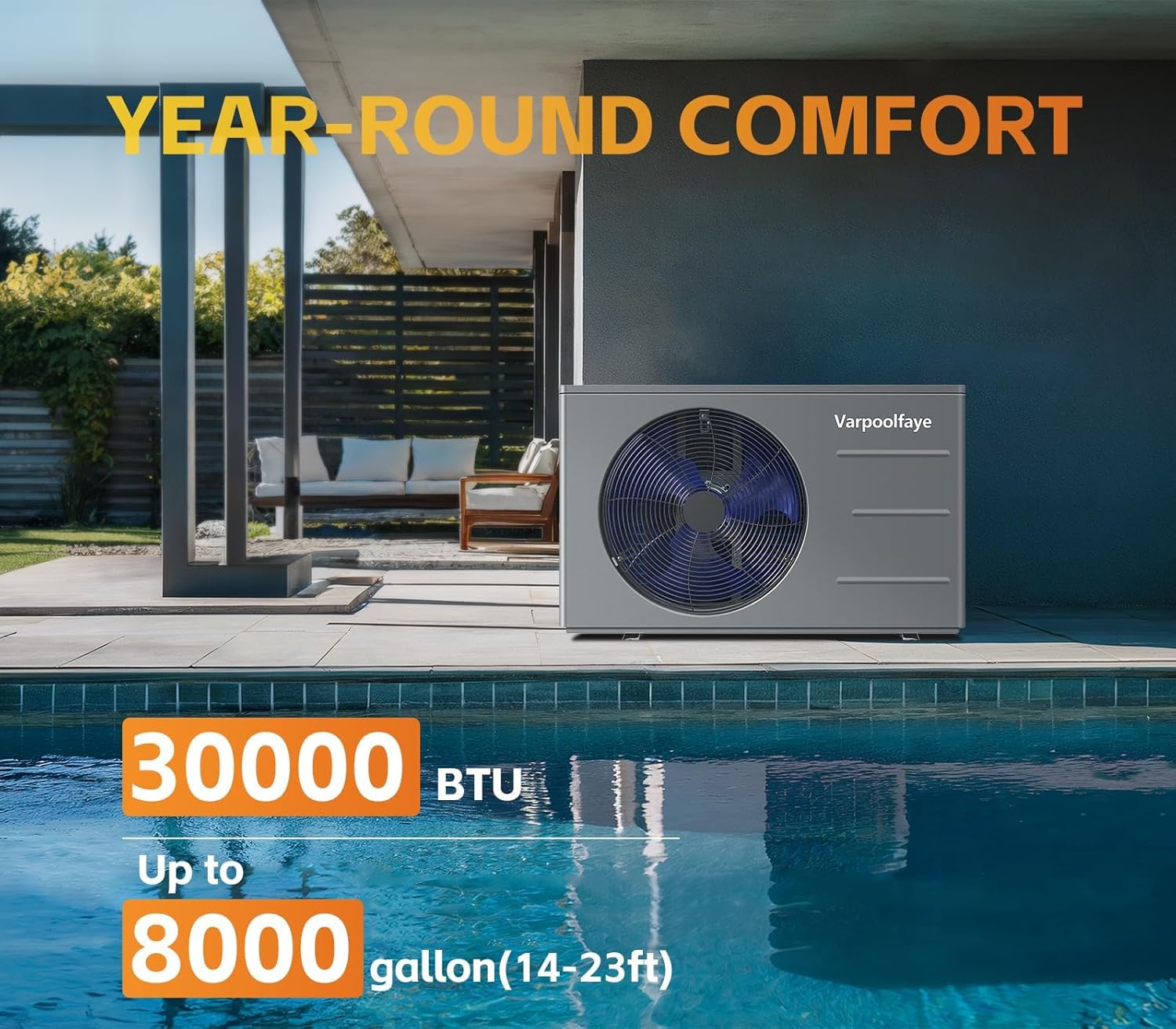 Varpoolfaye 30000 BTU Pool Heater For Inground Pool Heater 120V Swimming Pool Heat Pump Above Ground 8000 Gallon Heating Cooling WiFi Control Schedule with Cover