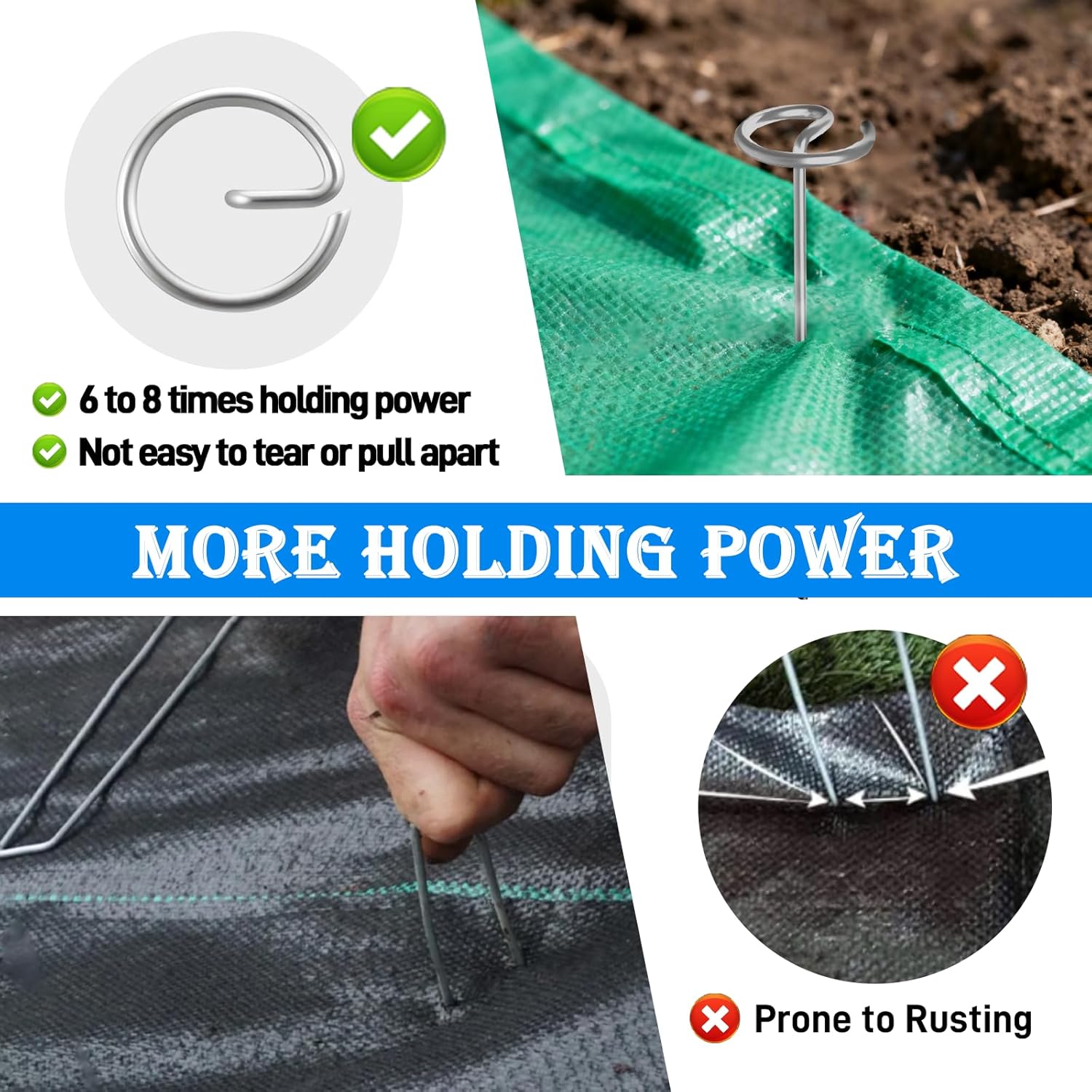 SETEAMS: The Durable, All-in-One Solution for Your Landscaping Needs Tired of flimsy pins that bend on installation or rust away after one season? Our Thickened 8 Gauge Landscape Fabric Pins are engineered based on user feedback to solve these exact problems. Paired with a FREE puller and secure packaging, we offer unparalleled durability, convenience, and value. Superior Strength & Anti-Bend: Our 0.16" thick 8 gauge steel construction provides the strength needed for effortless installation, eliminating the frustration of bending pins. Long-Lasting Anti-Rust Finish: The galvanized coating ensures our pins withstand moisture and varied soil pH levels, remaining reliable season after season. Large Top for Easy Use & Safety: The 1.3-inch circle top is easy to hit with a hammer, protects the fabric from damage, and simplifies removal. Unmatched Holding Force: The combination of thick gauge and large top distributes pressure, preventing fabric tear and securing covers more reliably than U-shaped staples. Wide Applicability: One Pin for Numerous Tasks As vividly shown in your application images, these versatile stakes are perfect for securing: