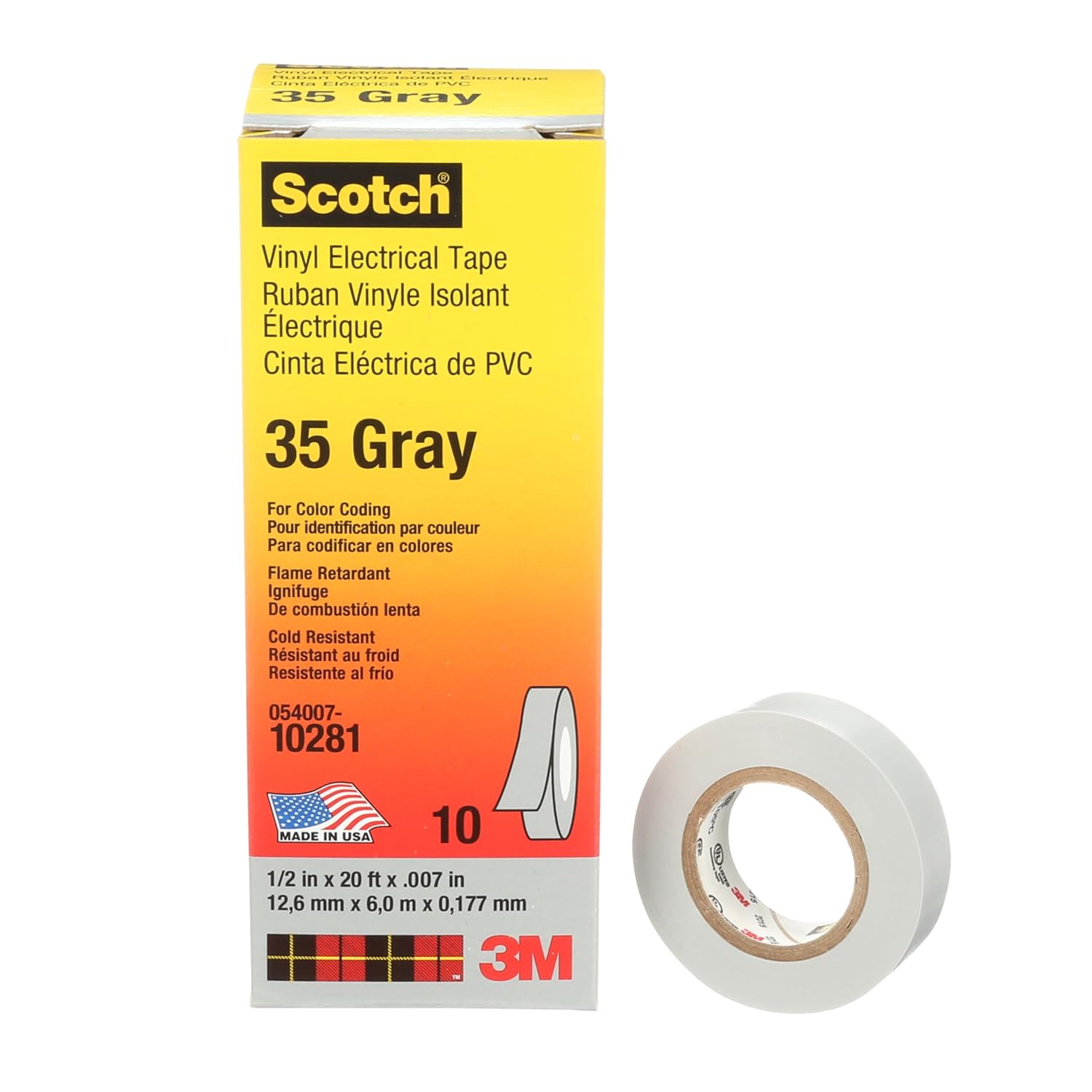 | Item Type Name | SCOTCH VINYL COLOR CODING ELECTRICAL TAPE 35, 1/2 IN X 20 FT, GRAY, 10 ROLLS/CARTON, 100 ROLLS/CASE |