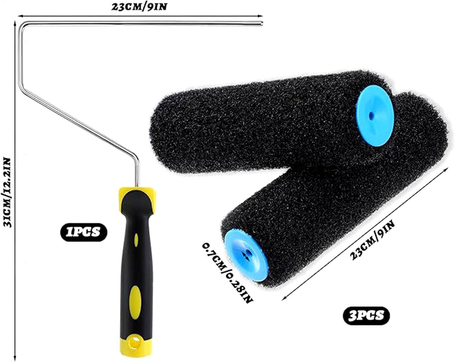 3Pcs Paint Roller Set Includes 9Inch Drywalls Compound Rollers And Frame Portable Accessory For Wall And CeilingsFeatures:Achieve professional painting result with our 9Inch Drywalls compound roller paint roller covers, designs for efficient application on various wall surfaces.Crafted from nylon, these rollers easy to and maintain their shape over time, ensuring long time For enthusiasts, home renovators, and professional painter, this Set meets painting needs.For indoor wall renovations, furniture painting, and artistics projects, these rollers adapt to multiple surfaces and environment.Enhances your painting toolkit with this set, featuring sturdy roller frame and three roller brushes for seamless coverage.Specifications:Component: NylonColor: As Picture ShowSize: 31x23cm/12.2x9.06inch, 23x0.7cn/9.06x0.28inchPackage Includes:1pc Drywalls Paint Roller SetNote:1.Please allow 1-2cm errors due to manual measurement, making sure that you will not mind before order. 2.Due to the differences between different monitors, the picture may not reflect the actual color.