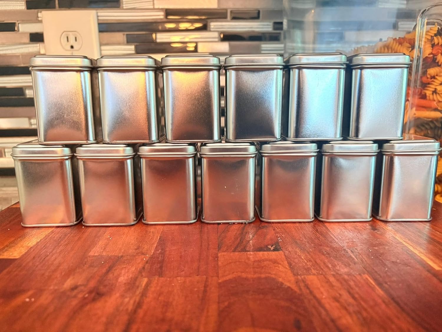 This product includes 48 pieces tin's metal square empty, measuring 1.75 x 1.75 x 2.5 inches (L x W x H) tin boxes with lids are suitable for travel, storing essential, lightweight and portable. High quality materials, these silver storage tin box are made of high quality materials, durable, rust proof, easy to clean, suitable for long term storage and use. Exquisite design: all our square hinges tins with lids are equipped with tight closures to provide a tight seal, and seamless edges reduce the risk of any messy leakage during travel. Multipurpose: the tins mini portable box with lid can be used to store a variety of small things,