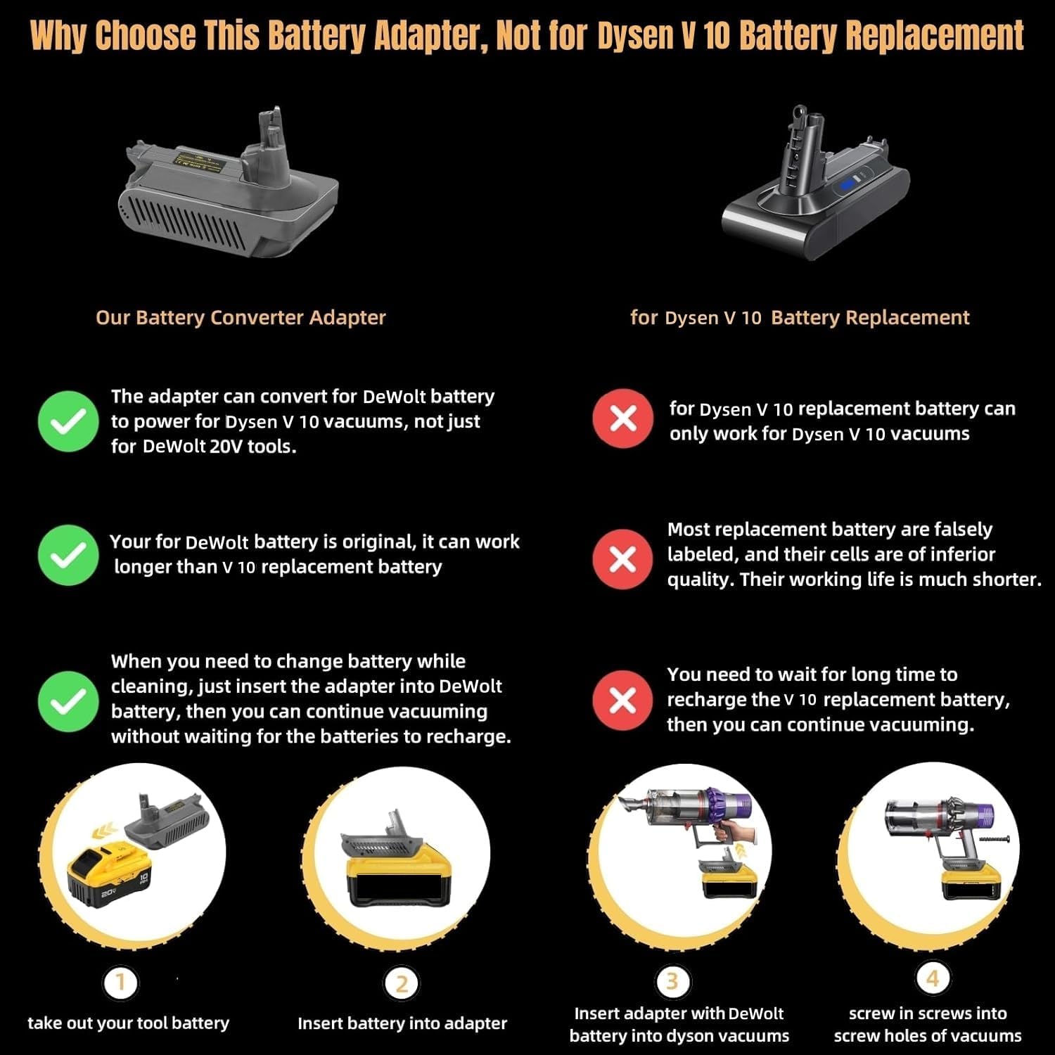 Adapter Convert for DeWalt 20V 60V Battery Compatible with Dyson V10 Vacuums