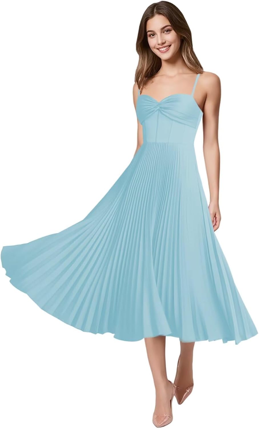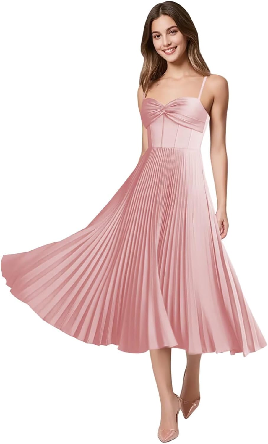 Welcome to Our Store! ➤ATTENTION: 1.Please reference our SIZE CHART on the image. It is more accurate to use our size chart to choose your size. If you are between two sizes, please choose the larger size. 2.Computer screen has chromatic aberration, especially between CRT screen and LCD screen, color difference can not be avoided, please understand. We are very experienced and provide exquisite elegant pleated satin bridesmaid dresses, spagheti straps satin bridesmaid dress, satin tea length formal wedding party dresses, a-line short wedding party gowns, pleated satin evening gowns and other special occasion dresses,ensuring confidence at weddings, proms, or evening soirees. Features: This beautiful satin pleated bridesmaid dress is featured pleated design, spaghetti straps,sleeveless,satin ,pleated, ruched,a-line, tea length, midi length. ➤Item Description: Material:Satin Apparel Silhouette: A-Line Back:Lace up Back Dress Length: Tea Length ➤Customized Services: We will provide the best service according to the needs of our customers. If you want to CUSTOM SIZE, please complete the format when you place the order. 1. Full Bust _____ inch 2. Waist _____ inch 3. Hips _____ inch 6. Natural height:_____inch 7. High Heels_____inch 8. The date you need the dress_____ If you don't know how to measure, please tell us via email. For the urgent order, please tell us before placing order to ensure you can get it on time.