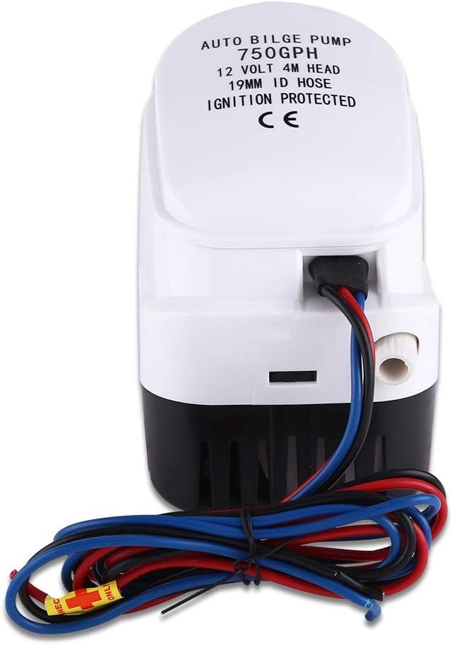 Features: Fully automatic, fully submersible electric pump.Built-in switch, can automatically turn on/off according to the water lever.Compact, efficient, water cooled long life motor.Rustproof and resistant.Stainless steel shaft.High-impact plastic housing.Quick release strainer for easy maintenance. Specifications: Material: Plastic & MetalColor: White & BlackVoltage: 12VCurrent: 3A Capacity: 750GPH(Gallons per hour)Cable Length: 90cm/35Outlet Diameter: 19mm(3/4)Pump Size: Pump Size: 14.1 x 8.4 x 10.4cm/5.6 x 3.3 x 4Package Weight: Approx. 550gApplication: can be used in boat bilges, pools or other applications where you have to remove water from.Package Included: 1 x Automatic Bilge Pump1 x User ManualNote: 1. These pumps are designed for intermittent use only, not designed for continuous use!2. New and old of this will be shipped randomly.