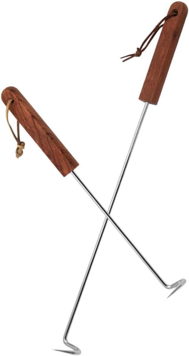 Package List 6 x Meat Hooks Features -Size:44.00X3.70X2.00cm/17.29X1.45X0.79in hook -Size:31.80X3.70X2.00cm/12.50X1.45X0.79in meat hook -Color:Brown rack -Material:Stainless Steel, Wood utensils - With fine workmanship, and the Meat Hook is not easy to wear or tear, very practical in use pig. - The hook is very pointed, easy to insert into the meat and the hanging of the meat is effortless grilling. - The sturdy Meat Hook is widely used for BBQ, camping and beach excursions and various parties meat flipper for home. - The stainless steel material is sturdy and strong, which is wear resistance and practical for the lasting time use meat flipper hook. - Practical meat hanger for hunters, BBQ grill, kitchens, meat shops or other food prep settings mitt.Goods Descriptionmeat boning hook The hook is a good choice to use bacon and roast duck.stainless steel flipper hook Are you still worried about not finding a suitable Meat Hook? Our meat hook is made of wood and stainless steel, which can be used for a longtime and are not easily damaged