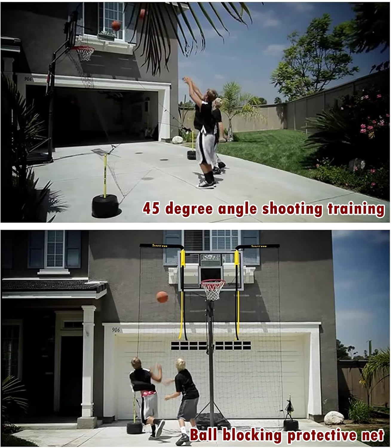 Basketball Rebounder Our ball return training aid can capture all shots reduce the time to chase the ball increase the number of shots and effectively improve the shooting percentage.Package Contents:1 × Basketball Return Trainer(with installation complete kit)Specification:Name: Basketball Net Return SystemMaterial: Polyethylene Fiber MeshMesh Support Frame: Steel TubeWeight: 7 kg(15.4 lbs)Color: Yellow + BlackNet Size: 4.8m x 4.8m(15.7ft x 15.7ft)Backboard Width Options: 100 cm- 180 cm(3.28 ft x 5.9 ft)Feature:- Easy to install remove and carry.Will not break and damage can be used for a long time.- Perfect gift for basketball beginners professional athletes.- The angle is - suitable for multi-directional shooting.- Save the steps of picking up the ball and improve training efficiency.- Strengthen shooting muscle memory and correct shooting hand shape and movs in time.Warm Reminder:- Manual measur there will be 1-2 cm error depending on the actual size.- Due to differences in some monitors and lighting reasons there may be a slight color difference between pictures and objects.