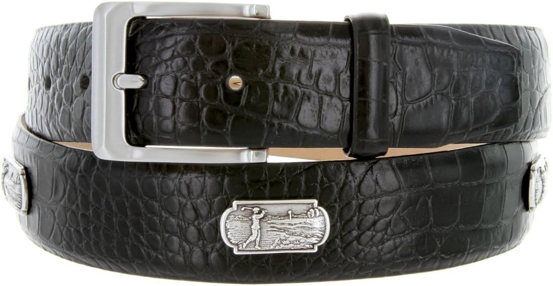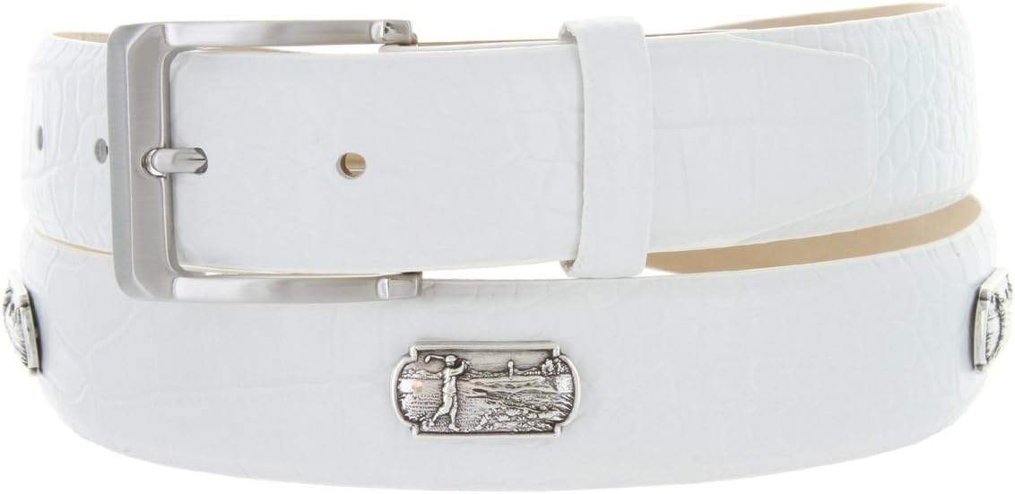 Stand out on the course with this handsome Men's golf belt. Genuine Full-Grain Cowhide Leather. 1-3/8 inch wide strap is perfect for shorts, khakis, or slacks. Adorned with Golf concho ornaments for a great sporty and casual look.