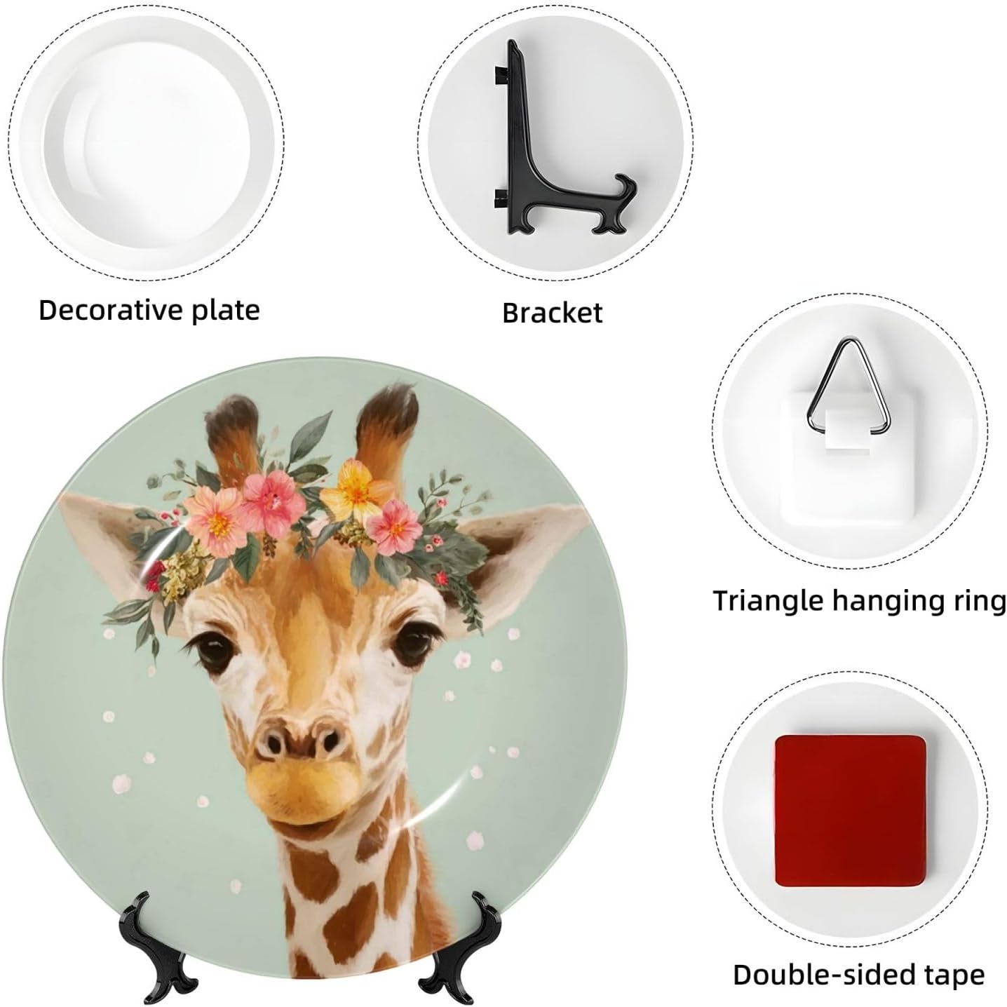 gokays decorative platedo you feel that your table is monotonous? Then use our decorative plate to add a little fun to the monotony of life.featuressize - 6 inch diameter;7 inch diameter;8 inch diameter;10 inch diametermaterial - ceramic design - Giraffe with Floral package - 1 x ceramic decorative plate, 1 x stand, 1 x pothookwhy choose gokays decorative plates?advantageas manufacturers we follow current trends and bring you the latest home fashion. Salad plates ideal for placement at home or in the office. Traditional porcelain making technology, fine workmanship. Ceramic dinner plates is a good gift for family and friends.convenient to useour dinner plates rack for display has 2 ways to use, you can just place the bracket base on a flat surface first, and then put the plate on it, also you can stick the provided pothook at the back of the plate, and then stick the plate on the wall, you can choose the suitable installation method according to the actual situation.occasionour ceramic ornaments salad plates is a perfect decorative and collection for any niche, table, or mantle at your home. Perfect for your office, home, living room, dining room, playroom, kitchen, cafe, study, studio, club, bar, and others.in a surprise for your family and friends!porcelain dessert plates is a perfect gift for any person in your life. You can give it directly to your lover as mother's day gift/father's day gift/birthday gift/christmas gift/valentines day gift/anniversary gift/wedding gift/housewarming gift/new home gift.start with our funny decorative plate, refresh your rooms!
