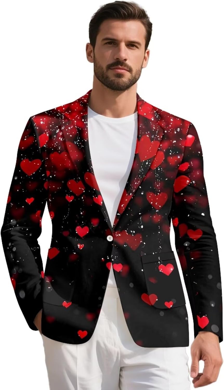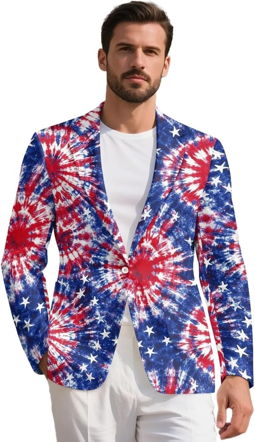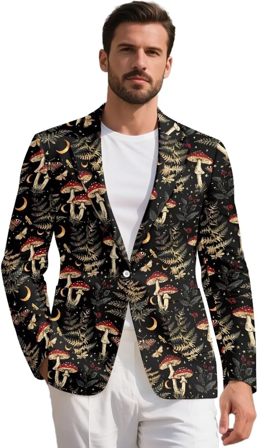 Xsehusvy Men's casual blazer Material: Crafted from polyester and spandex, which is comfy, no-fading, skin-friendly and wear resistant. It’s comfortable to wear throughout the day without feeling restricted. Men's tuxedo jacket is available in 9 sizes: S, M, L, XL, 2XL, 3XL, 4XL, 5XL. They are suitable for most shapes of men. So, please look carefully the size chart before ordering. The colors and patterns are versatile and easy to pair with both casual and formal attire, such as American flag, cow hide, fire, lemon, horse, hippie flower, tiger, tropical flower, mushroom, tie dye and sunflower etc. Xsehusvy Men's Sport Coat is a versatile and stylish blazer that strikes the perfect balance between casual wear and business attire. Whether you're dressing up for a work event or just adding a touch of sophistication to a casual outfit, this jacket will serve you well. Finally, I hope you have a pleasing experience in Xsehusvy.
