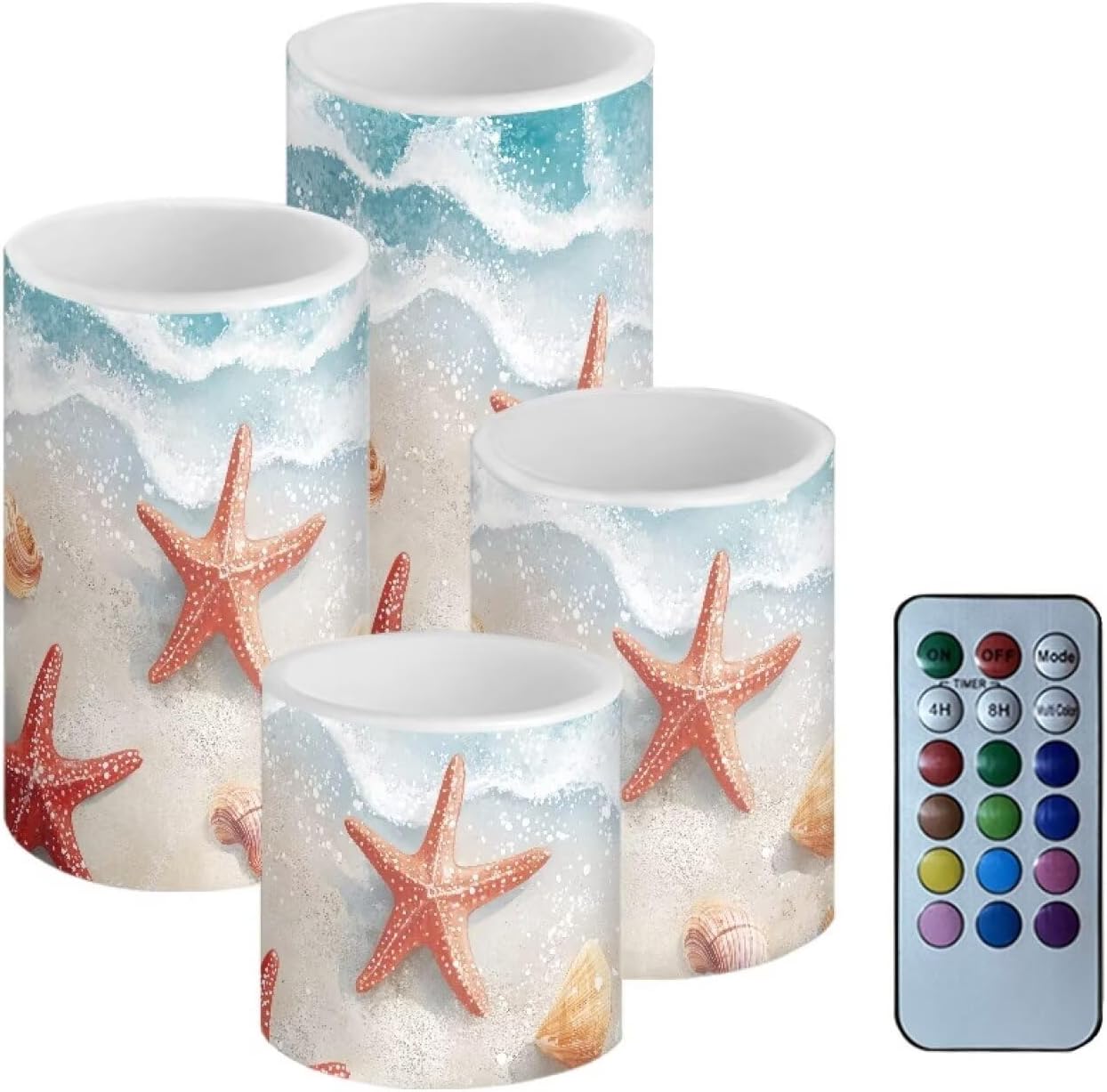 Candles Sets(not battery include) Material:Premium frosted plastic. Color: ivory color Candles comes in 4 different size: --Diameter 7.5cm/3inch Height 7.3cm/2.9inch --Diameter 7.5cm/3inch Height 9.7cm/3.8inch --Diameter 7.5cm/3inch Height 12cm/4.7inch --Diameter 7.5cm/3inch Height 14.5cm/5.7inch Features: --with remote control,12 colors for you choose,have 4-hour or 8-hour timing mode --warm yellow tealights with miniature flicker --turn on/ off manually. --battery operated by 3 x AAA batteries. (Batteries not Included) --these flameless candles set is long lasting,buy them once, enjoy them for years to come! --suit for any spaces,any weather,indoor or outdoor. --4 pieces battery candles,create a romantic atmosphere and sparks interest for wedding,parties,home,birthday,festival and other occasions. without the worry of fire hazard, wax melting or allergic scent, warmer and peaceful atmosphere will make you enjoy your event.You will love it. Using Tips: 1.When the battery is too weak for normal power supply, your flameless candle will dim light, please turn off the candle and replace the battery. 2.Do not mix old or new batteries. 3.when not in use for a long time, please remove the battery from the LED candle. Note: 1.Due to the different camera or lighting environment, please allow a little chromatic aberration. 2.Due to different measurement methods, please allow an error of 1-3mm. Thank you! 3.Thank you for your business! If you have any questions, please don't hesitate to contact us directly.