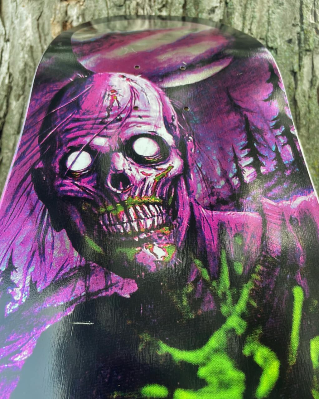 We are proud to celebrate 20 years since the ghastly resurrection of Creature Skateboards with the first Pro Series offered originally in 2005. Grab a piece of Creature history with the 'Feeding Time XX' re-issue Pro Series, now recolored with an eerie foil underpass and updated on the OG Overlordz signature shapes. Navarrette Feeding Time XX - 9" x 32.82" - 15.25" WB. 7 ply North American Maple pressed individually using epoxy - making a strong, responsive deck with long lasting pop and consistent concave and kick. ATV is a universal medium-depth concave with symmetrical nose and tail kick that performs well in all terrains on a wide variety of shapes - for anybody, anywhere.