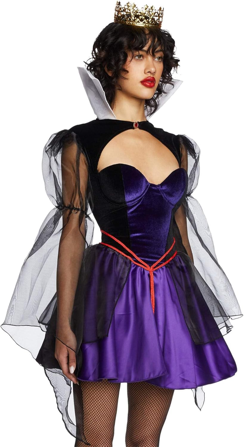 Take a bite out of the spotlight in the Dolls Kill One Bad Apple Costume Set by Trickz N’ Treatz. This fairytale-inspired costume features a velvet bodice with a padded underwire bust and dramatic cutout detail, sheer organza puff sleeves, and a tall contrast collar with a gemstone button closure. The layered satin and organza skirt creates striking movement, while the matching crown completes your transformation into the ultimate bad apple. Perfect for Halloween, cosplay, or costume parties where you're ready to rule the room.