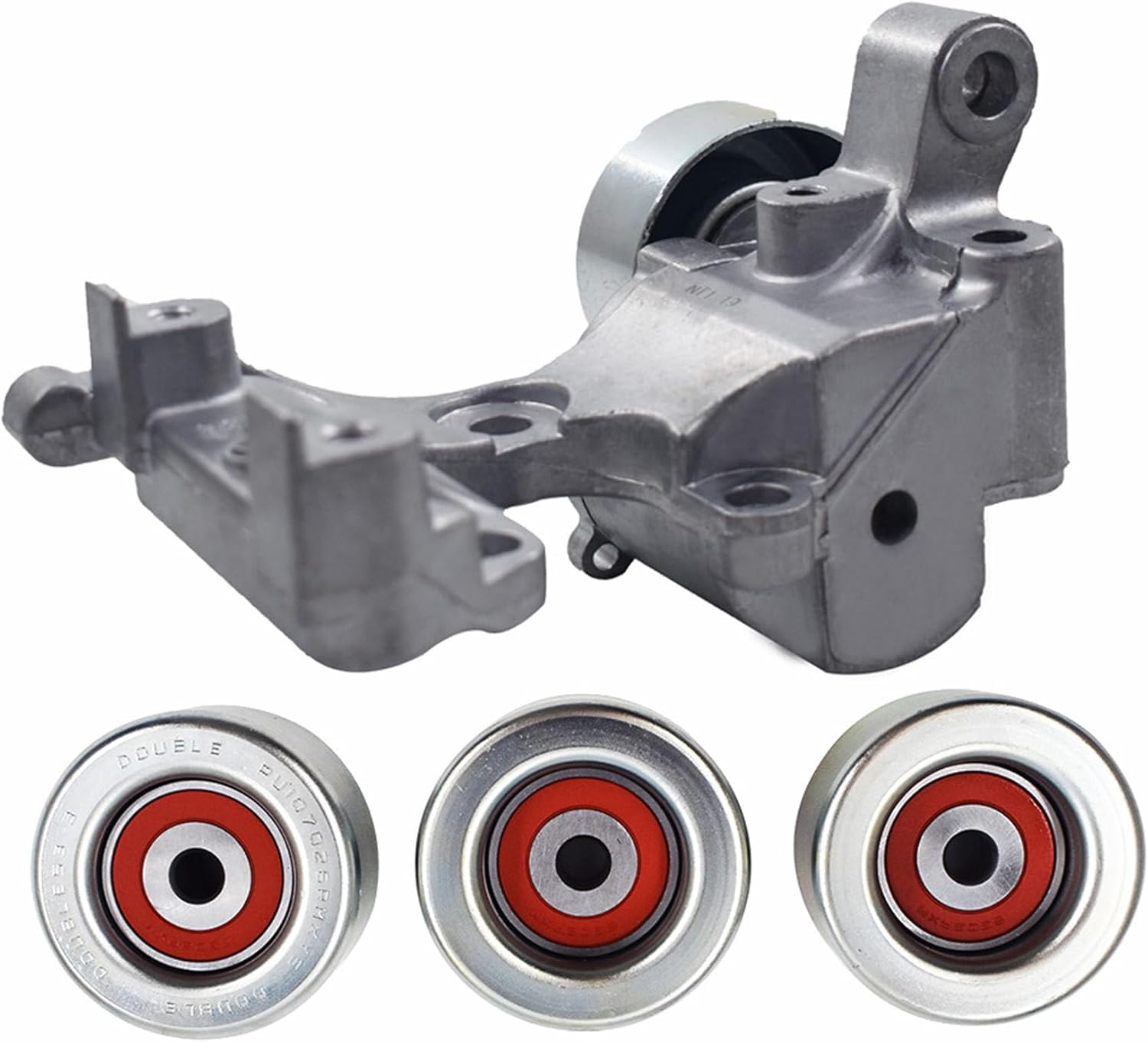 Drive Belt Tensioner and 3 Pulley Replacement for 4Runner 2003-2009 Replacement for Tacoma 2005-2015 Replacement for Replacement for 4Runner 4.0 V6 2003-2009 Replacement for FJ Cruiser 4.0 V6 2007-2009 Replacement for Tacoma 4.0 V6 2005-2015 Replacement for Tundra 4.0 V6 2005-2011 Replacement for Part Number: Replacement for 1T132P111P30 1660331040 1660431020Pacakge Includes1 x Drive Belt Tensioner3 x Drive Belt Tensioner PulleyNotePlease make sure that the model number, part number, and photo are the same as yours before ordering
