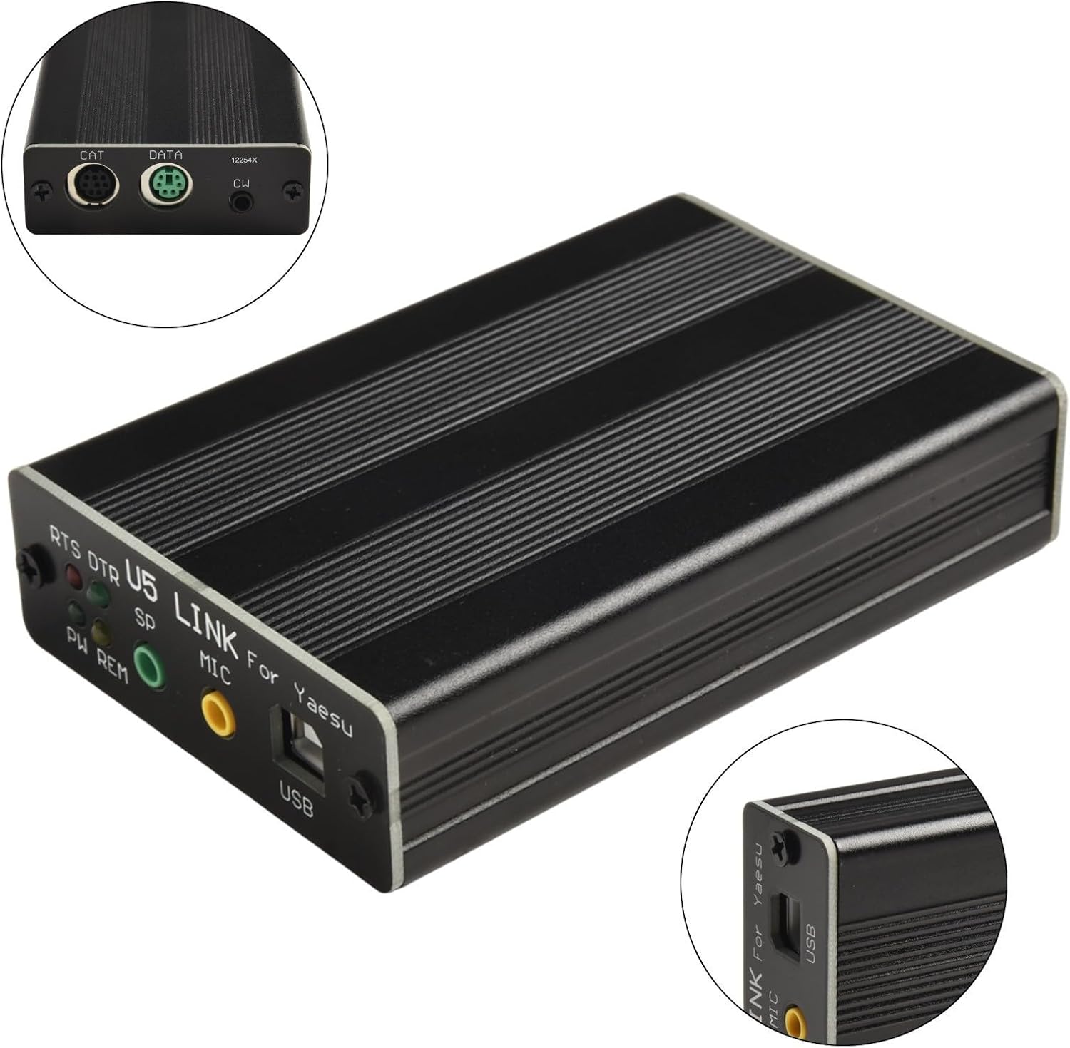Product Description:* Made of materials, sturdy and* FIDI FT-232RL USB interface chip* Patch technology* 6n127 communication optocoupler, speed up to 115200* and play* Radio remote control interface support: full photoelectric isolation, CAT remote control supports stable high-speed communication 115200* Complete signal support: including TXD RXD RTS DTR signals.* Support SQL control and signal import* Specially for customized high-quality audio isolation transformer, shielded and isolated, no noise* and play, no settings required, no external power supply required* Standardized voice/data radio interface: DATA( for MINI DIN 6 specification)* Remote interface standardization CAT: CAT( for MINI DIN 8 specification)Tunertechnology:DABSupported radio stations:for YAESU : FT-817,857,,7800,8800,8900,100D, .- for ICOM: IC-2710, 2720, 2820 and 703(data interface only, PACKET), 706(data interface only, PACKET), 7000(data interface only, PACKET), .- For Kenwood: TM-V71, TS-480Software support: HRD/DM780/LOGG32NIMM/WriteLog/ECHOLINK/pasyPal/SSTV/Cw_player/APRS/AGWTracker/MMTTY/MMVARI/MIXW Package Included:x for U5-8X7x USB cable2 x Audio cablex data cablex CAT remote control cable
