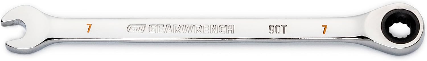 GEARWRENCH 90-tooth ratcheting wrench swing arc of just 4° turns fasteners in extremely tight spaces. Longer, wider beam delivers improved reach, leverage, and comfort. Large color-coded SAE/metric markings make size identification easy. All exceed ASME performance specs and come with the trusted GEARWRENCH Limited Lifetime Warranty.