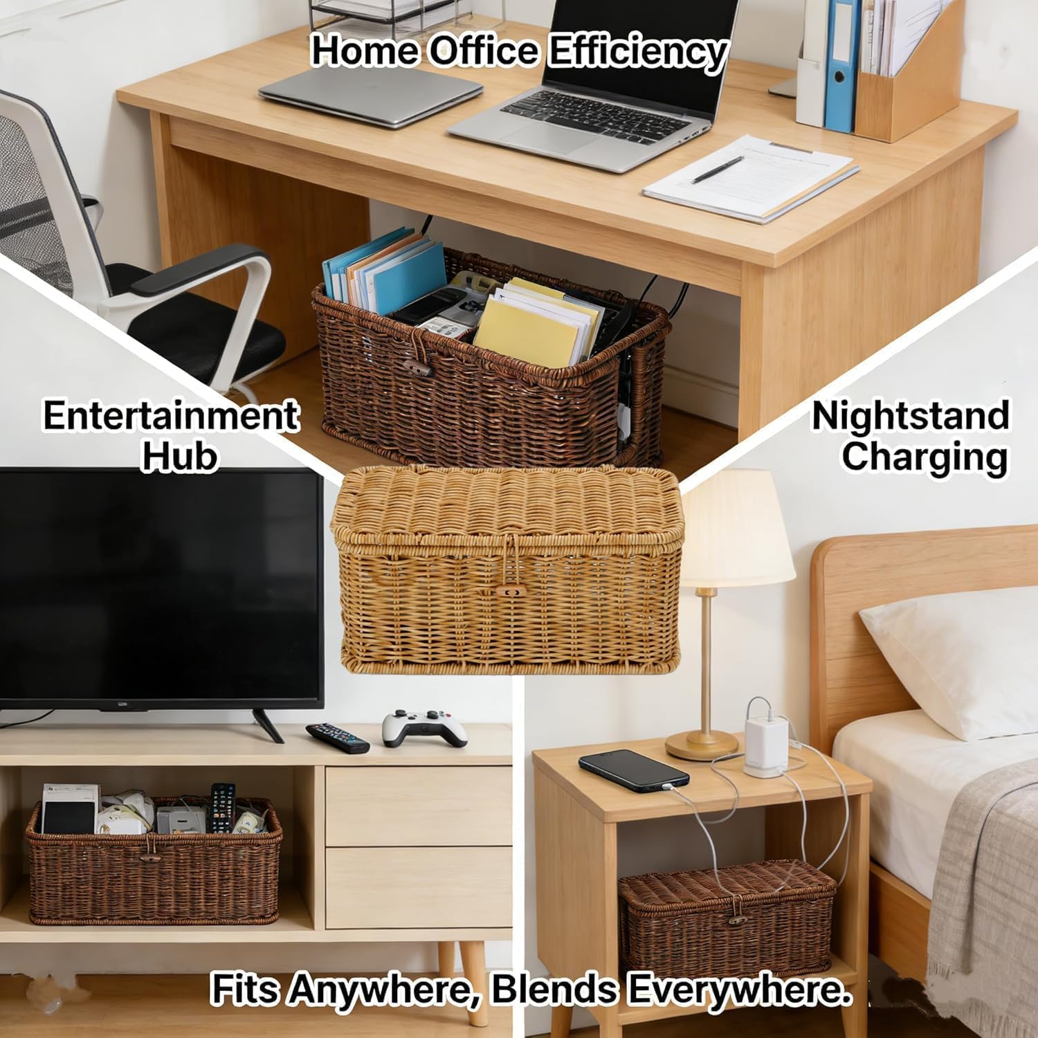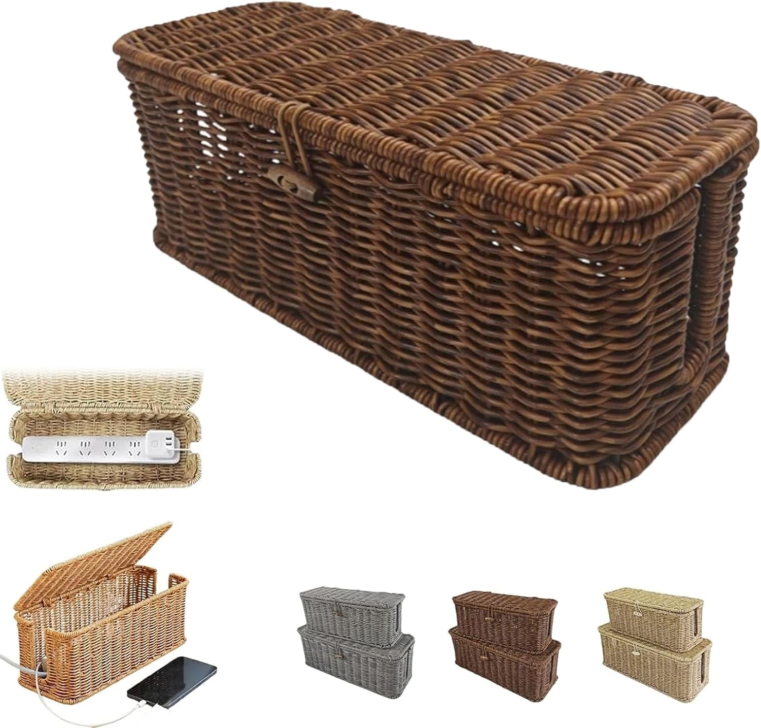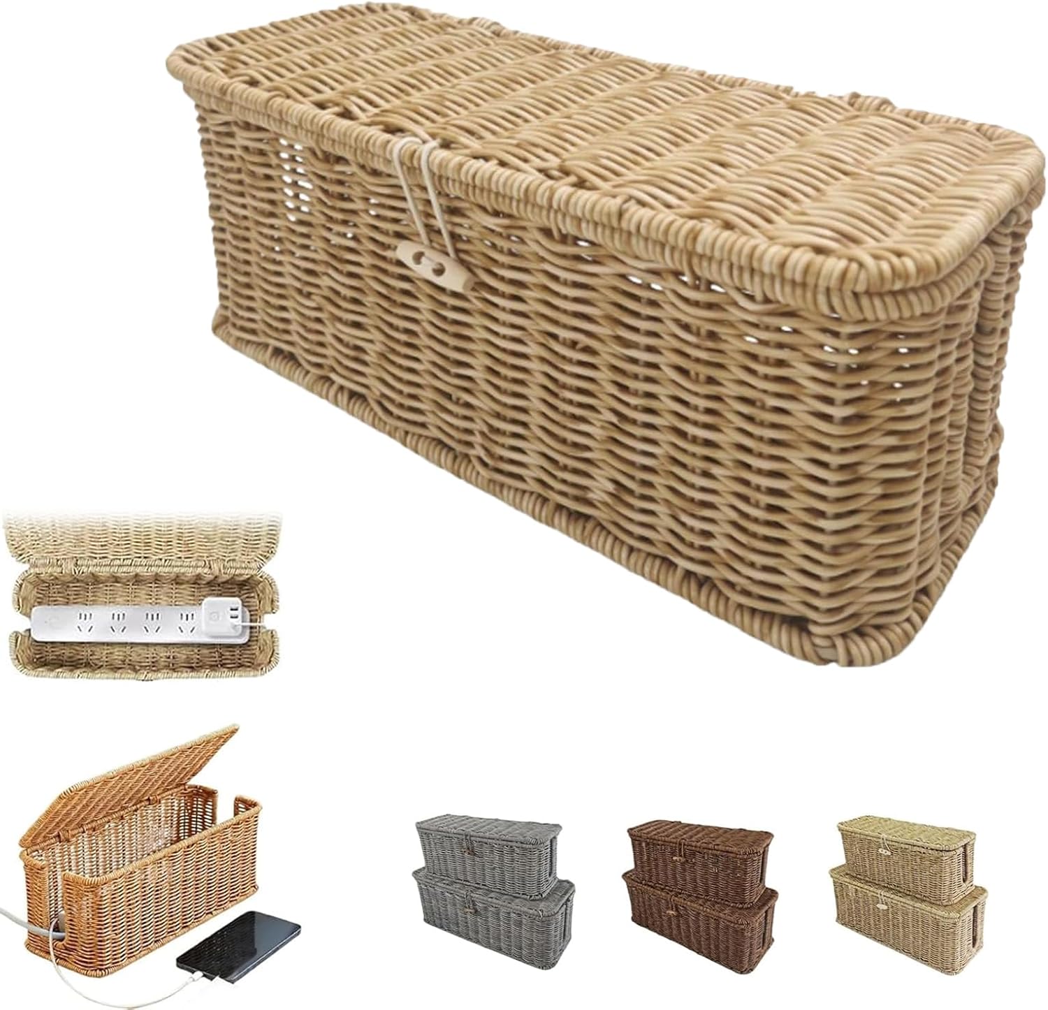 Specifications: Name: Handwoven Rattan Cable Management Box Material: Plastic Rattan Color: Gray, Brown, Beige Size: 33*13*13cm / 12.9*5.1*5.1inch, 40*16*15cm / 15.7*6.2*5.9inch Weight: 460g, 650g Package Included: 1 Pc * Handwoven Rattan Cable Management Box Notes: 1.Please Allow Slight Differences Due To Manual Measurement. 2.Due To The Different Monitors And Light, The Picture May Not Show The Actual Color Of The Item.