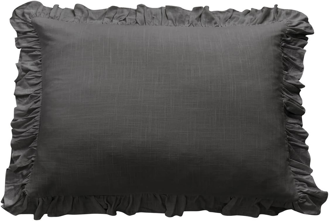 Inspire romance with our Washed Linen Ruffled Dutch Euro Pillow, featuring a delicate flowing ruffled border for a graceful and dreamy touch to your bedding. Our washed linen blend has a durable texture that's easy to care for and wrinkle-resistant, but still maintains a super-soft and inviting hand feel. Pair with other pieces in our Lily Collection, or complement with our Lily Washed Linen Bedding Set for a casual and romantic farmhouse-style bedroom.