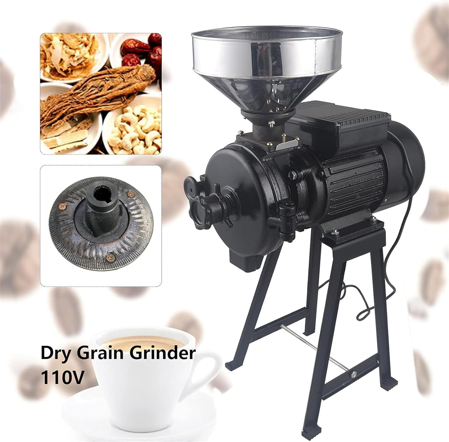 Introducing our premium electric grain grinder, expertly crafted from durable galvanized iron to ensure longevity and resistance to rust. This grinder harmoniously combines traditional milling techniques with modern steel mill technology, delivering an outstanding grinding performance that enhances your culinary endeavors.With its sleek, compact design, this versatile grinder offers a user-friendly experience. The quick-opening mechanism and snap-on cover make it simple to operate, while the mirror-polished machine cover, secure snap-down lock, and sealing rubber ring enhance its durability. The non-slip mat base ensures stability during use, allowing you to grind with confidence. For optimal maintenance, avoid direct water exposure to the tank to protect the motor.Equipped with overload protection, this electric grain grinder guarantees efficient mixing and consistent results, prioritizing your safety during operation. The rubber feet provide a stable foundation, ensuring both your safety and the longevity of the machine.Ideal for a variety of food applications, this grinder excels at transforming bean curd, starch, rice flour, and corn into fine powders. It efficiently grinds wheat, rice, corn, sorghum, soybeans, and other grains into dry powder, making it an essential tool for home cooks and food industry professionals alike. Enhance your food preparation with this reliable electric grain grinder, designed to meet your diverse grinding needs.