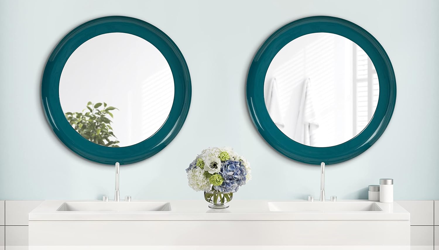 The Laranya mirror offers midcentury style and quality craftsmanship to your home while brightening your space. Inspired by styles commonly seen in midcentury modern design, the Laranya features a 3-dimension round shape, creating depth and definition on your wall. The frame is crafted with rich iron material, giving it added resiliency to last for multiple years of display. It also features a two-tone teal and black finish for that midcentury look, hand-finished in enamel to add extra glossy detail. The mirror's 22-inch diameter allow it to be displayed on its own or within a gallery wall to showcase to create an eye-catching and unifying focal point. The Laranya is also fantastic as bathroom decor or a vanity mirror! Its reflective 27.5-inch surface enhances the light already in your space while making its surroundings feel more open and inviting. If you want to hang this wall mirror on your living room, entryway, bedroom, or bathroom wall, use the metal D-ring hangers conveniently attached to the back of its metal frame.