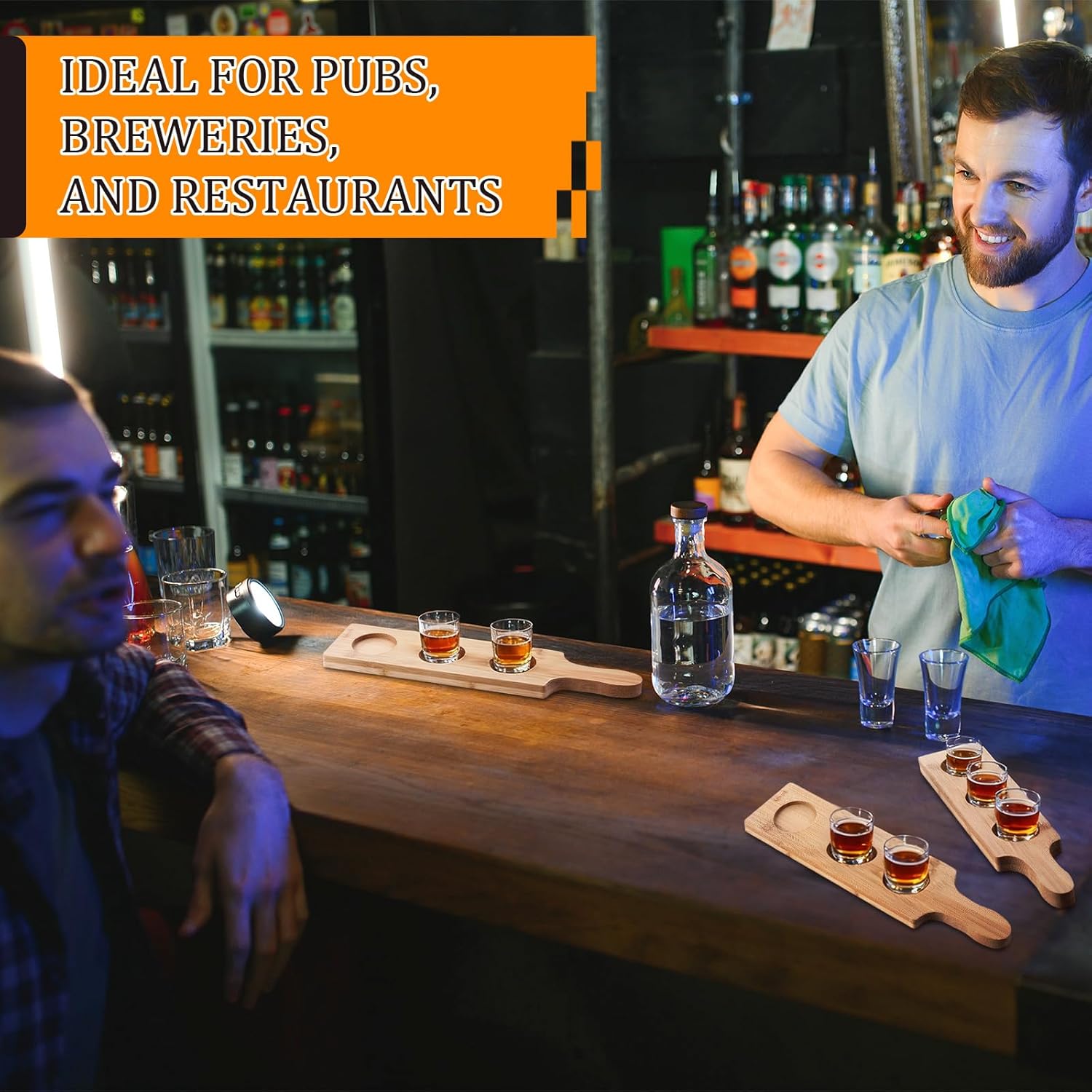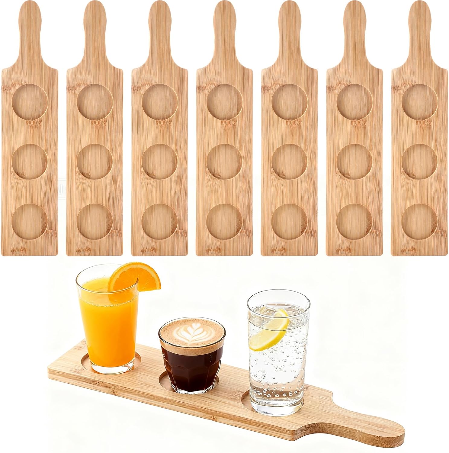 Features: Crafted from bamboo, these trays offer a rustic yet modern look that fits seamlessly into home, pubs, or breweries. The smooth finish and rounded edges ensure safe handling, while the built-in handle makes carrying easy and comfortable. Ideal for casual gatherings or professional service alike, this 12-piece set is designed for convenience, durability, and visual appeal. Specifications: Material: bamboo Color: natural bamboo Size: 15.0 x 3.9 inch Package includes: 12 x Bamboo Tasting Flight Boards Notes: Manual measurement, please allow slight errors on size. The color may exist a slight difference due to different screen displays