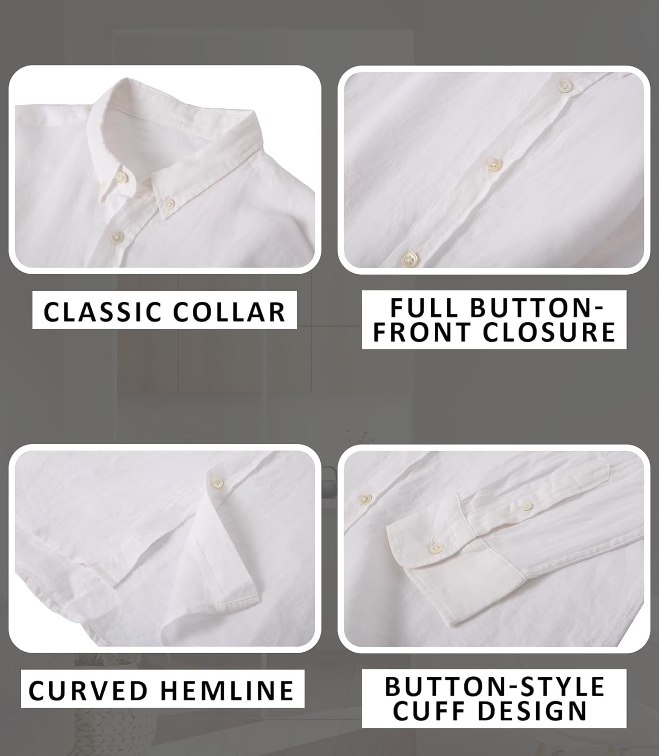 | Style Name | Clsen 100% Linen Long Sleeves Button-down Shirt |