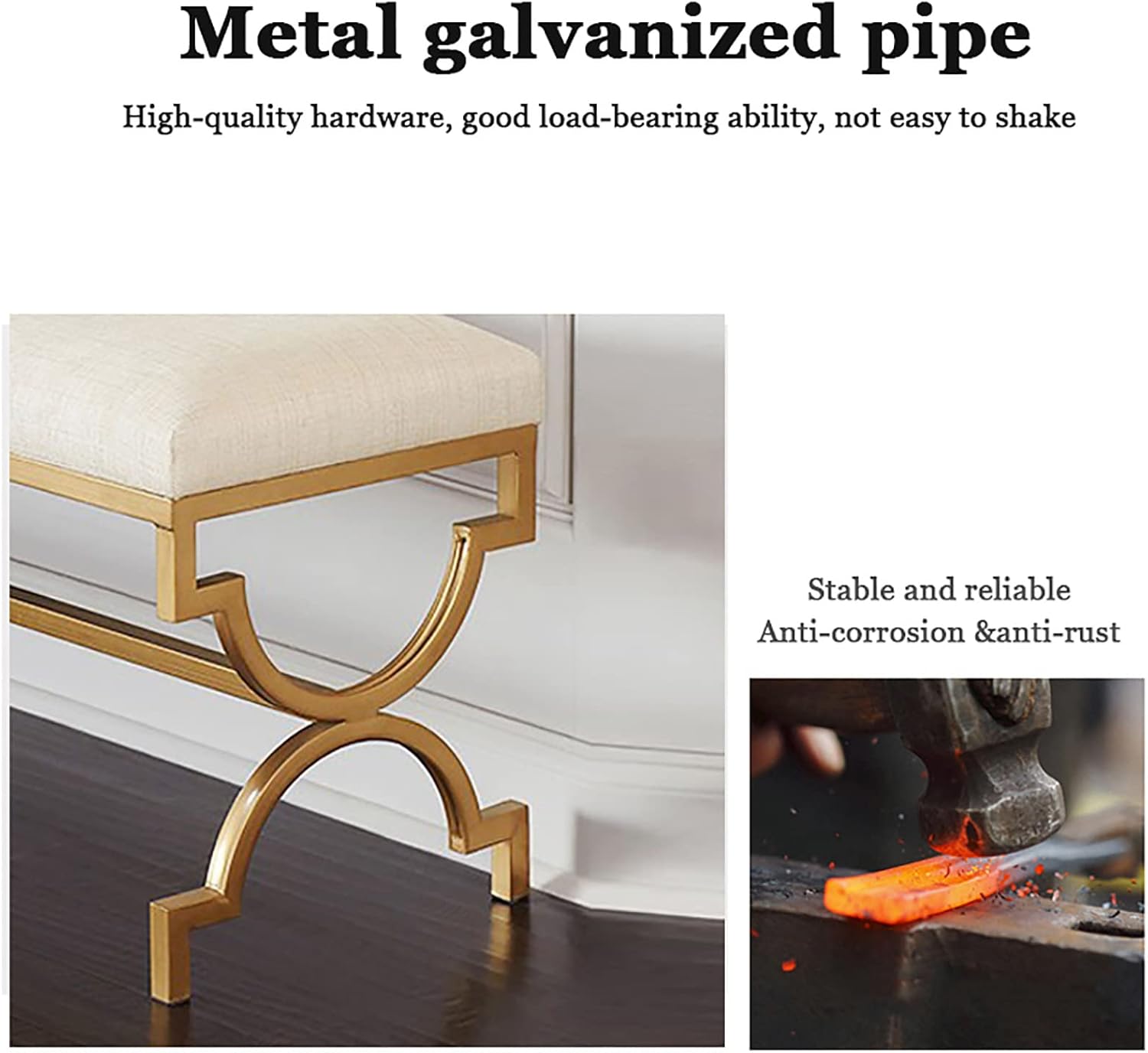Gorgeous Vintage Bench With Practical At The Same Time Is Also Home To The Well-decorated,Ideal For Dining,Living Room,Entryway,Bedroom,It Is Your Meal,The Perfect Companion To Chat.Place This Elegant Bench At The End Of Your Bed As A Spot For Tying Your Shoes And Laying Out Your Clothes,Or Put It In Your Entryway As A Welcome To Your Guests. Modern Decorative design Bedroom Benches For Foot Of Bed Designed With An Elegant And Rustic Style Is Reflected In Classic Color Scheme,And Elaborately Carved Patterns On The Legs.A Simple Shape And High-quality Materials Create A Traditional And Refined Beauty To Your Decor. Sturdy Stool Legs &Rubber feet Bench Entirely Of Natural Rubber Wood,To Ensure Durability And Corrosion Resistance.Leg Of The Chair Cushion Rubber Can Effectively Prevent Friction And Damage To The Floor With The Floor Tufted Fabric &HIGH DENSITY SPONGE Tufted Is Thick And Luxury,Which Is Very Delicate To Touch And No Irritation To People Who Have Senstive Skin.High-density Foam-filled Cushions,Sedentary Provide A High Degree Of Comfort. Specification: Material:Fabic+Metal