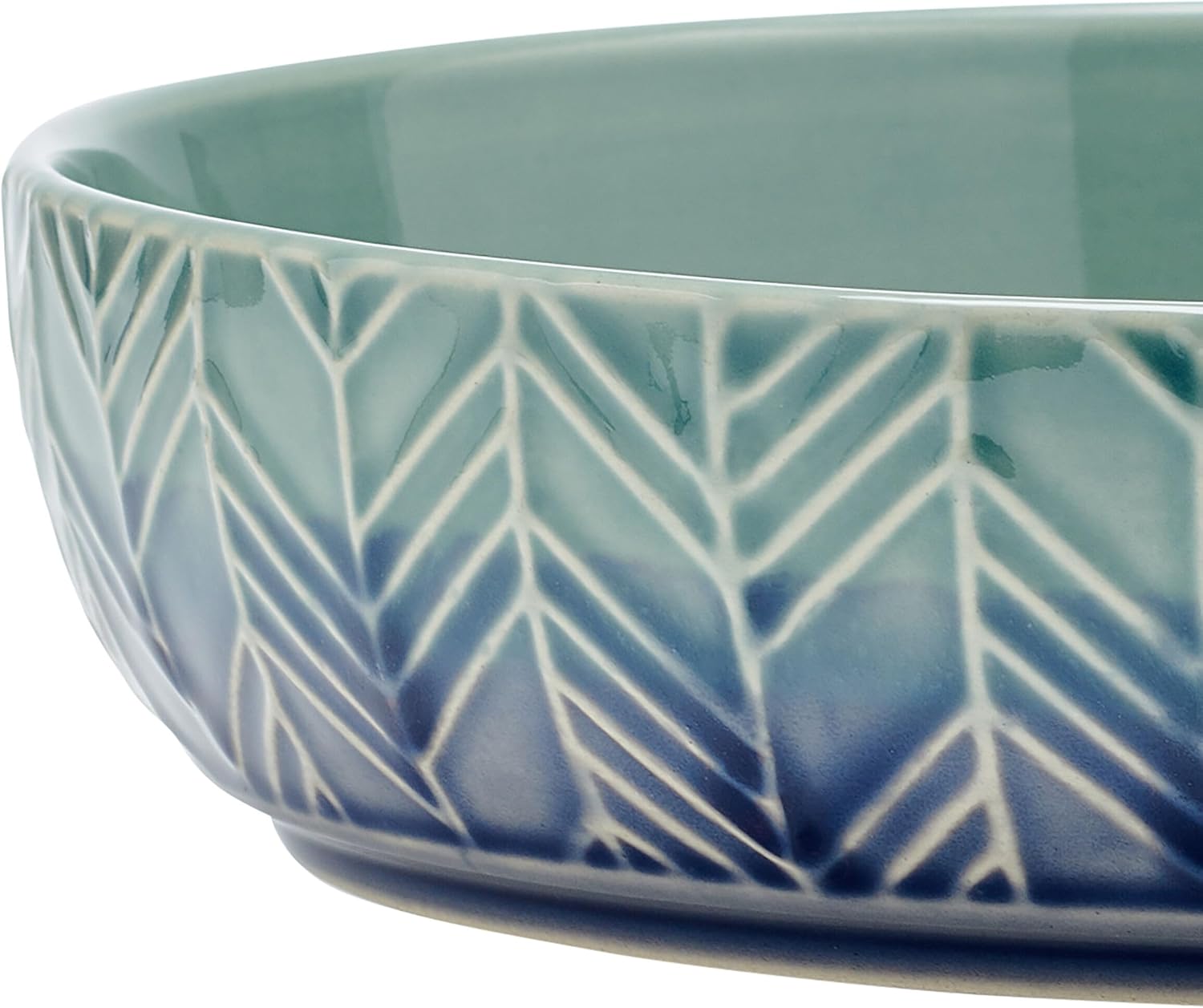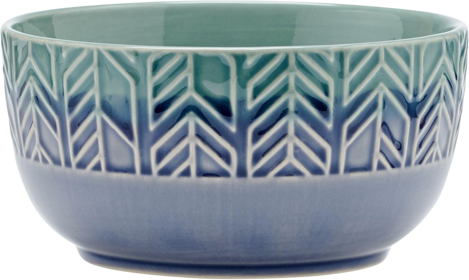 Celebrate the allure of regional style with this Osborne 9 piece Bowl Set by Mikasa. Made of high quality stoneware for long lasting durability, these vibrant bowls are inspired by southwestern design, with a handmade look and an eye catching embossed arrow design. The reactive glaze finish gives each indiviudal piece a unique appearance ,and the varying shades of blue pop on a contemporary tabletop display. Collection includes just the right bowls for all your dining needs. 9 piece set, service for 3, includes 3 each: 10.5 inch dinner bowl 33 fluid ounce capacity, 8.5 inch pasta bowl with a 33 fluid ounce capacity, and 6 inch cereal bowl with a 30 fluid ounce capacity. Microwave and dishwasher safe.