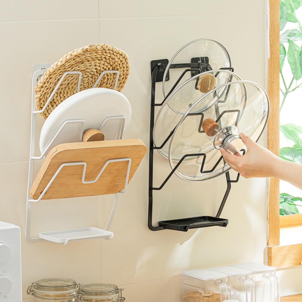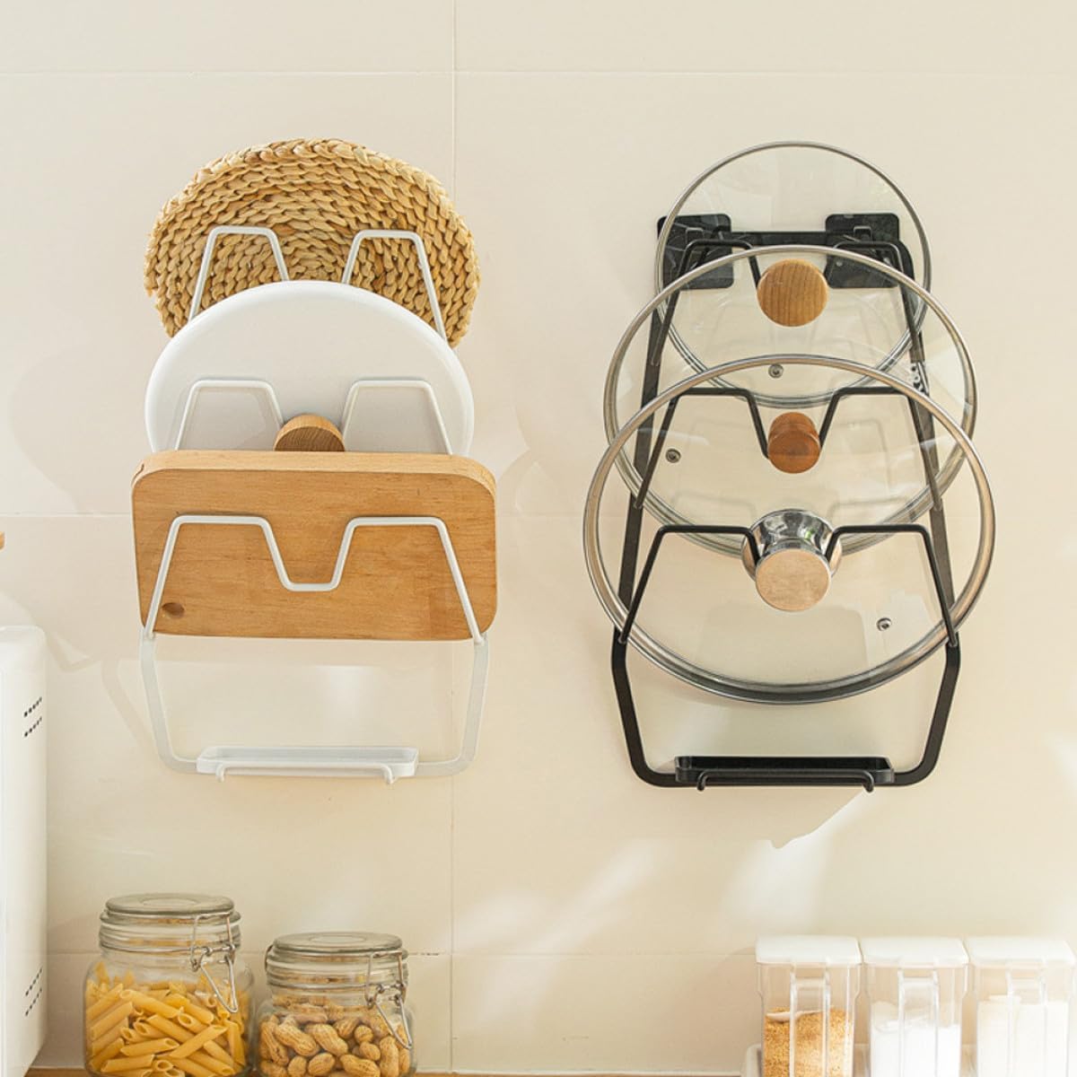 Package Include 1 x Storage Rack Characteristics -Product Info:Wall-mounted cutting board rack -Material: Iron, Plastic, Glue, -Size: 37.80X24.00X13.00cm/14.86X9.43X5.11in -Color: Black -Light and , the pot cover holder can save effort, good accessory for every home, they are very sturdy and not easy to break or deform wall mount pot pan racks. -The storage rack is widely used in holding pot, pot cover, plate, chopping board, pan, etc wall organizer for kitchen. -The product is simple , but the product is very practical in use, which brings great convenience to you kitchen wall rack. -Wall mounted design makes it easy to hold your kitchen and keep your kitchen organized Practical Pot Cover Rack. -The product is light, portable, easy to use, and is a convenient and practical pot cover rack kitchen pot storage rack.Goods Informationwall mount pot pan racks Can be used for home or hotel.kitchen rack The pot cover rack will keep the chopping board dry, achieve your health life.wall-mounted pot lid rack A kitchen storage holder can make your kitchen in order.kitchen pot holder If you want to have a multi-purpose kitchen pot cover rack, then this pot cover rack can help you