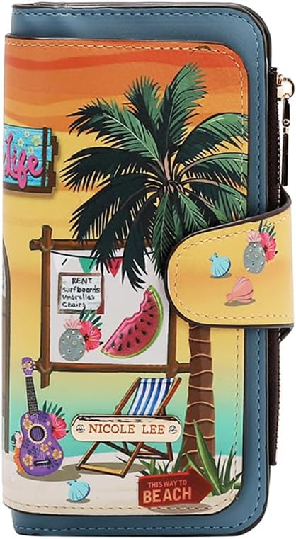 Elevate your everyday organization with the Nicole Lee BIFOLD LAYERED WALLET in SAMANTHA LA BELLEZA design. Crafted from premium pebbled vegan leather, this stylish wallet features a fold-over flap with magnetic snap button closure and elegant gold-tone hardware accents, including a logo engraved nameplate and heart zipper pull. The thoughtfully designed bifold interior offers exceptional storage with 14 card slots, 2 ID windows, and 5 cash compartments, plus a secure center zip compartment to keep your essentials neatly arranged. Measuring a compact 3.5"L x 1"W x 7.5"H, this wallet combines fashion with functionality. For added security, built-in RFID-blocking technology protects your personal information from electronic theft, giving you peace of mind wherever you go. The perfect blend of style, security, and organization for the modern individual.