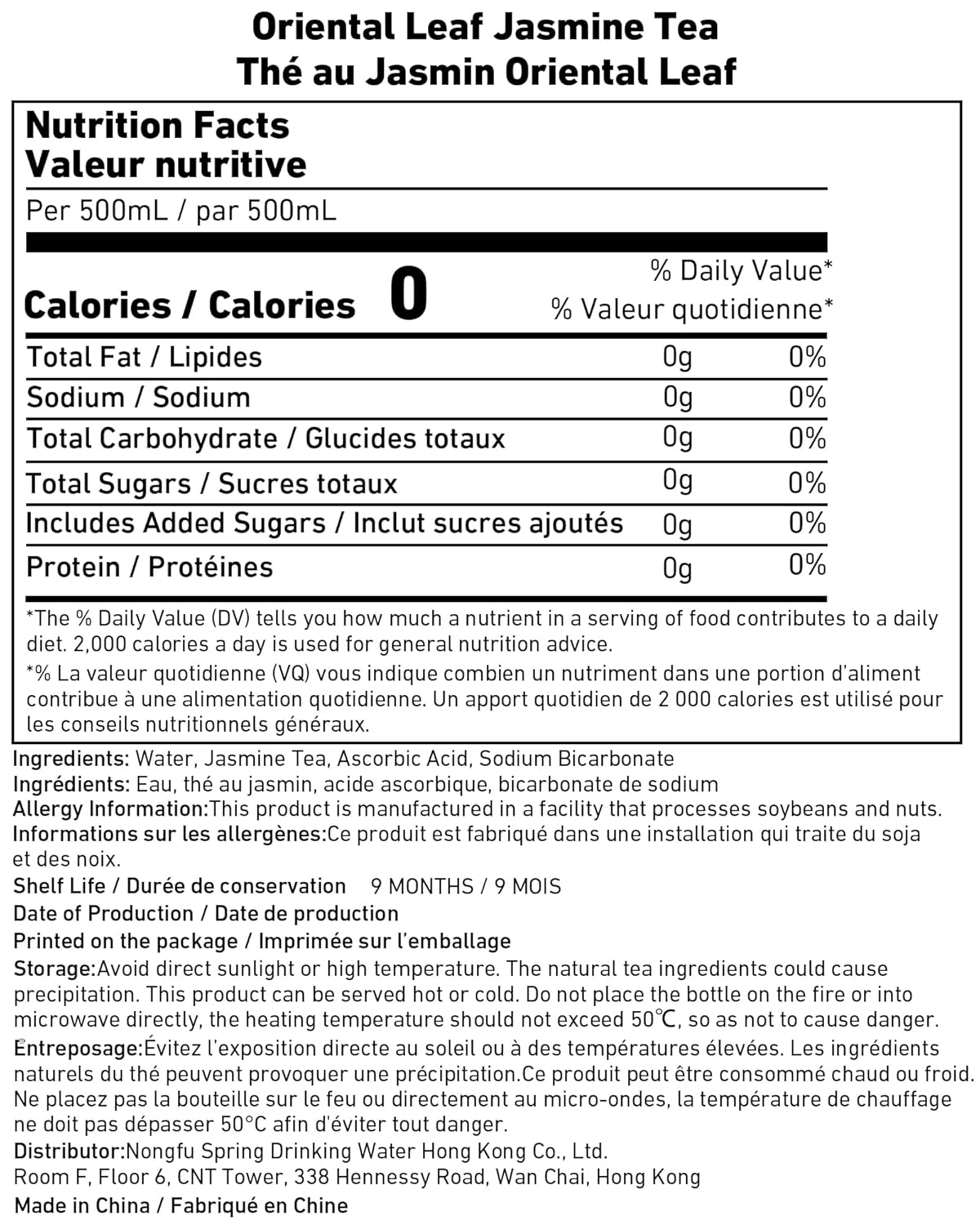 | Special Ingredients | Jasmine tea, sodium bicarbonate, vitamin C, water |