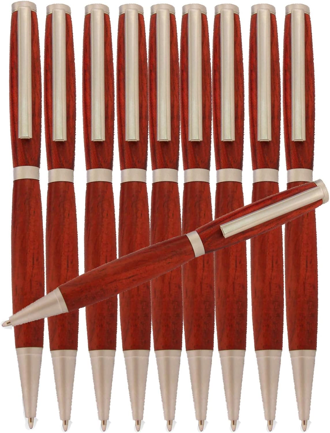 PEN KIT MALL Slimline Pen Kit for Lathe Pack of 10 assorted kits This popular pen kit is used by new pen turners as well as seasoned veterans. The Pen Kit Mall Pen Kit is easy to make, economical and will make a great gift. It features a single twist mechanism and an attractive clip. The kit requires a 7mm drill bit, Slimline bushings, pen mandrel, and a wood or acrylic blank. 10 pen kits included. Blanks are sold separately. As we try to get 10 different kits in each deal there may be times when you will have a duplicate of one or two.