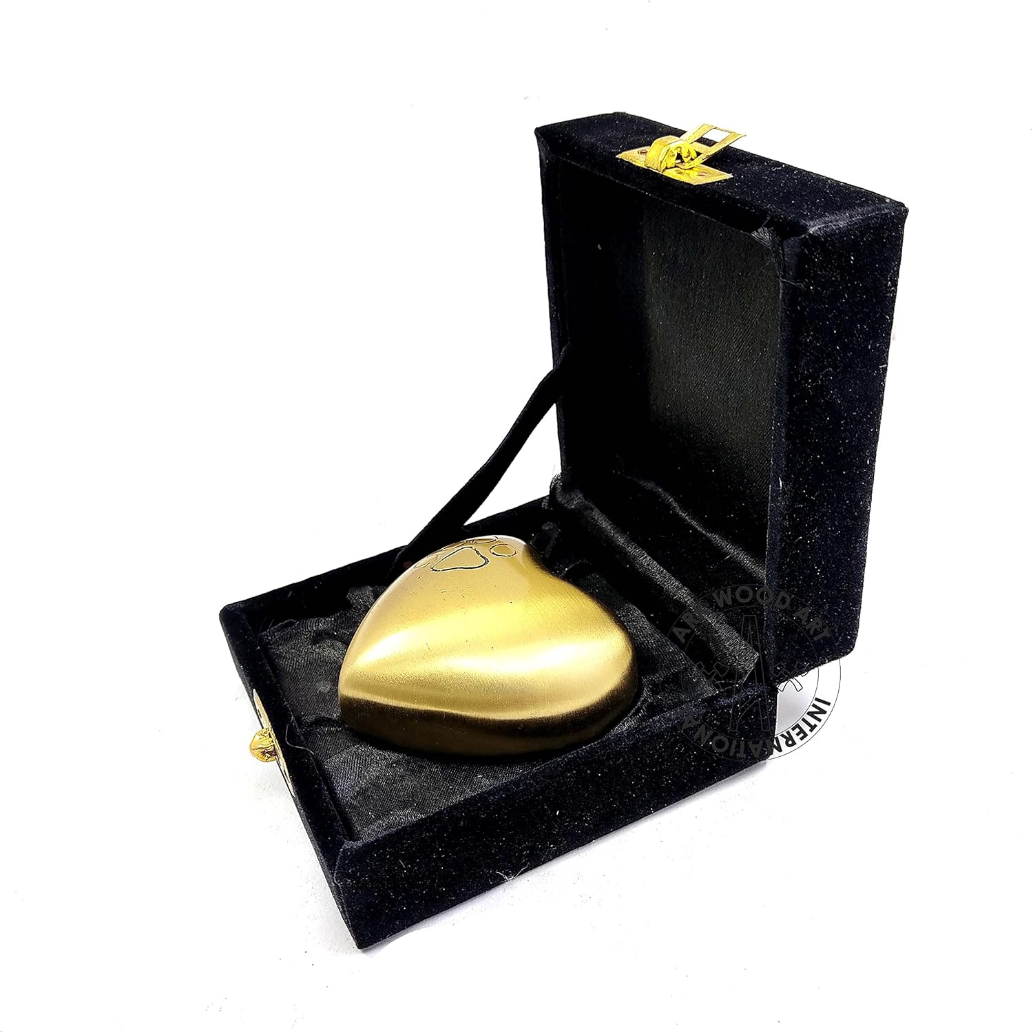 "Golden Brass Heart" Keepsake Miniature Cremation Urn. This Golden color handcrafted heart shaped miniature urn is made of 100% Brass. DIMENSION : Height 7cm (2.75"), Length 7cm (2.7"), Width 3.5cm (1.4") MATERIAL AND FINISHING: This Keepsake Miniature Urn is made of brass. It is in the shape of a heart and is of golden color. It comes with a polished surface that gives it a sleek appearance and touch. Let the weight and presence of the cool, solid BRASS let you focus, and allow this to strengthen and fortify you as you pass through this difficult time. Trace your fingers around the tiny heart, the symbol of your eternal love for the departed soul, which can never be broken. The bright clean light that reflects from the surface will lift your sad heart, and, if you desire, you can carry this keepsake cremation urn with you in its velvet bag or keep it in the presentation box. This Pet Heart Urn Is Handmade And Finishing Quality Design By Ark Wood Art IN For Loving Gift and pet loss beautiful memory heart for cat & Dog Baby ashes .