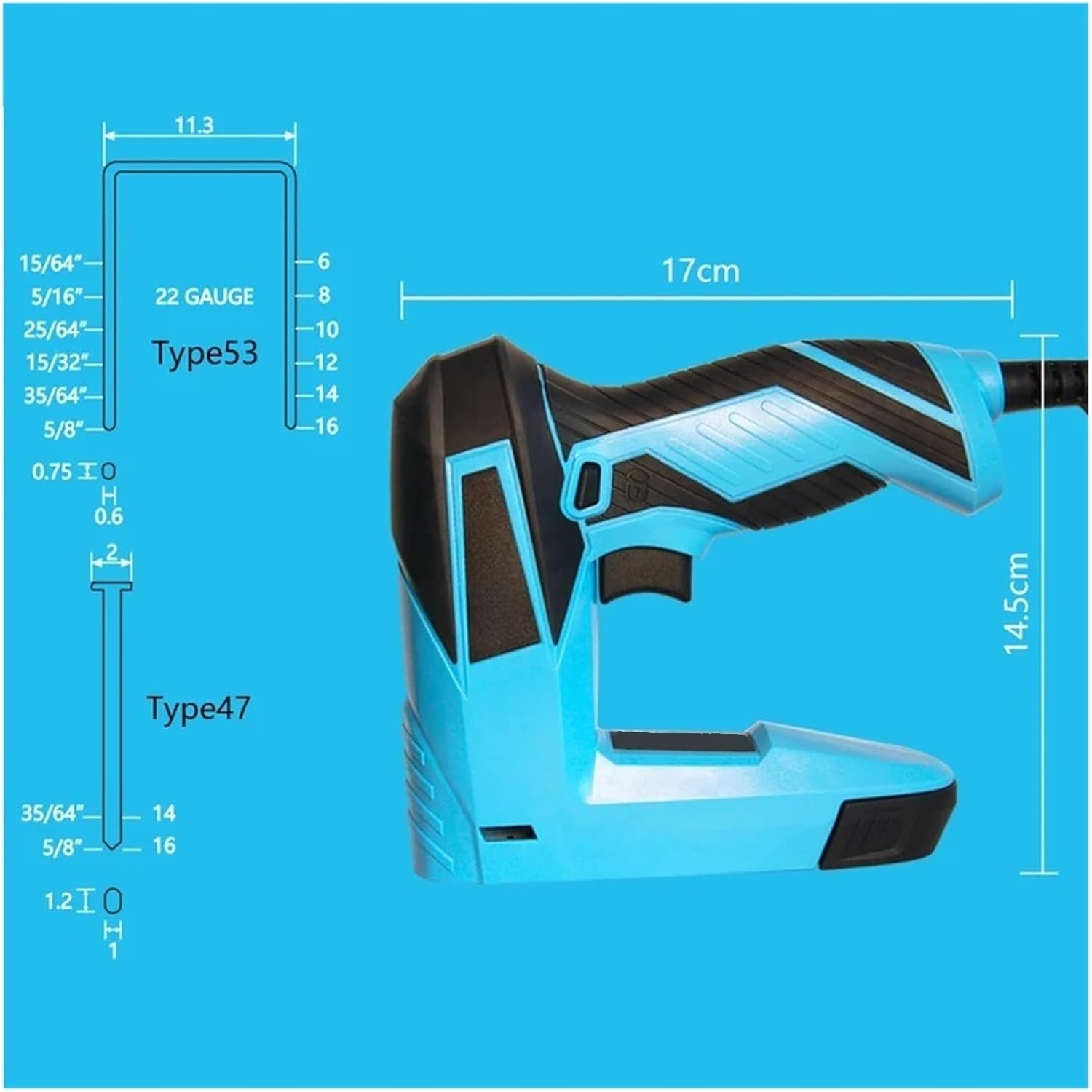 1. Equipped with a safety touch switch for rapid continuous firing, ensuring efficient and seamless without jamming, making nail driving quick and hassle .2. Streamline body design, Simple color design,nice-looking and pleasing to the eye ,Lightweight and portable, flexible and convenient,It also fit for operating in small space.3. Upper exhaust cover made of cast iron, Applicable to knocking at nails directly,Special striker design, stable and reliable qualitySpecifications:Rated Voltage: 220~240V/ 50 HZRated Input Power: 45WNailing speed : 30/ minWorking capability : Staple 8-14mm/Nail 14mmType : Framing Nail GunPower Source : ElectricityPackage list:1pcs nail gunStaple:10mm*800PCSNail: 14mm*200PCS