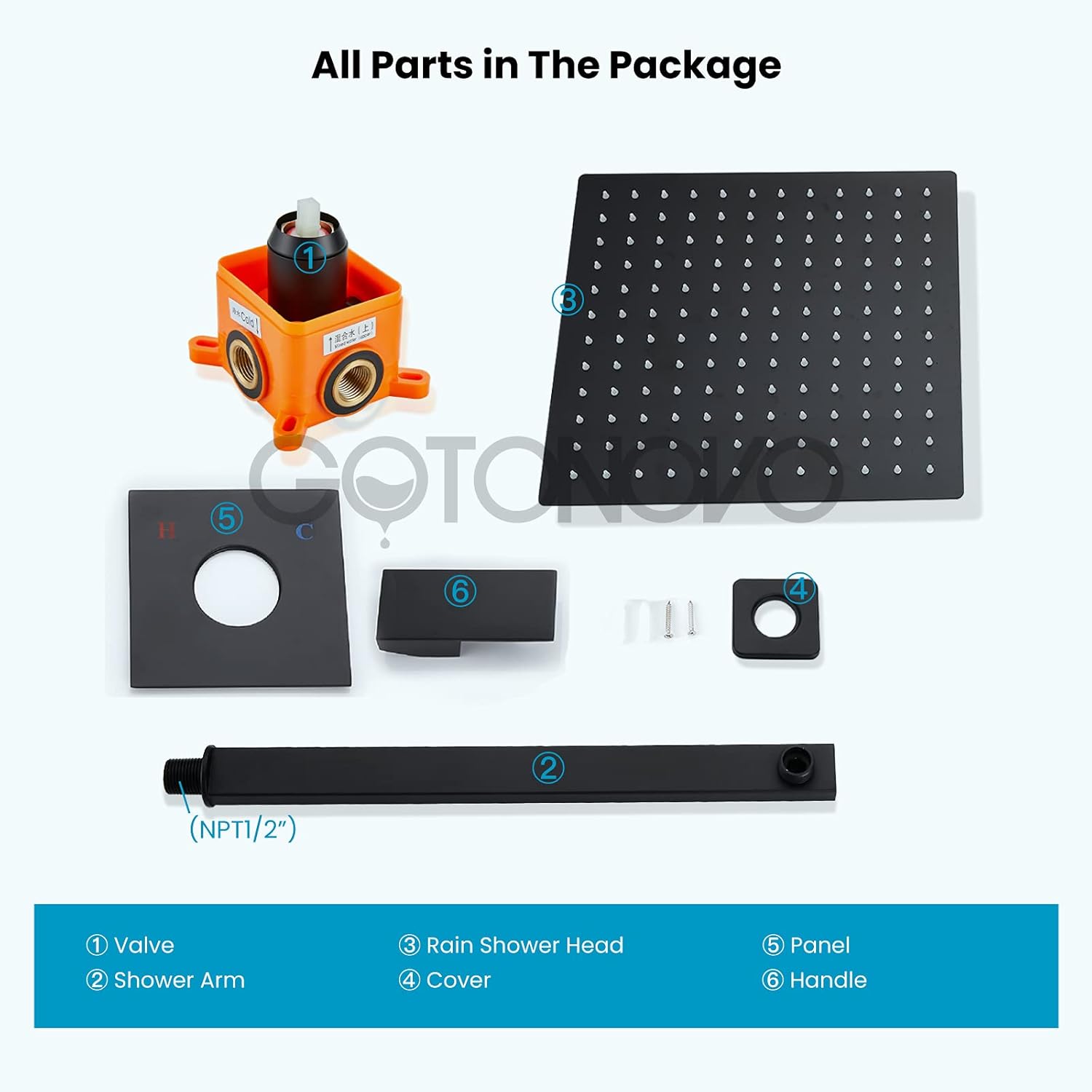 Product description Rainfall Shower System has superior corrosion and rust-resistant,but also prevent dirty from sticking to shower faucet surface, clean shower set by cloth is enough in Daily Use.This wall mount tub faucet is made of premium brass material, matte black finish to resist corrosion, anti-rust for long service life. Rain Shower System: Material: Brass Finish:Matte Black Installation: Wall Mounted Shower Hose: 150cm(59inch) Rain Shower Head:10 inch square shower headBathtub Faucet Details: Material: Stainless Steel,Brass Finish:Matte Black Installation: Wall Mounted Functions: Dual Functions Valve Type: Rough-in Valve Tub Spout:180° Rotatable Tub Spout Tub Spout Reach:10.24inch(260mm) Shower Hose:59inch(150cm)