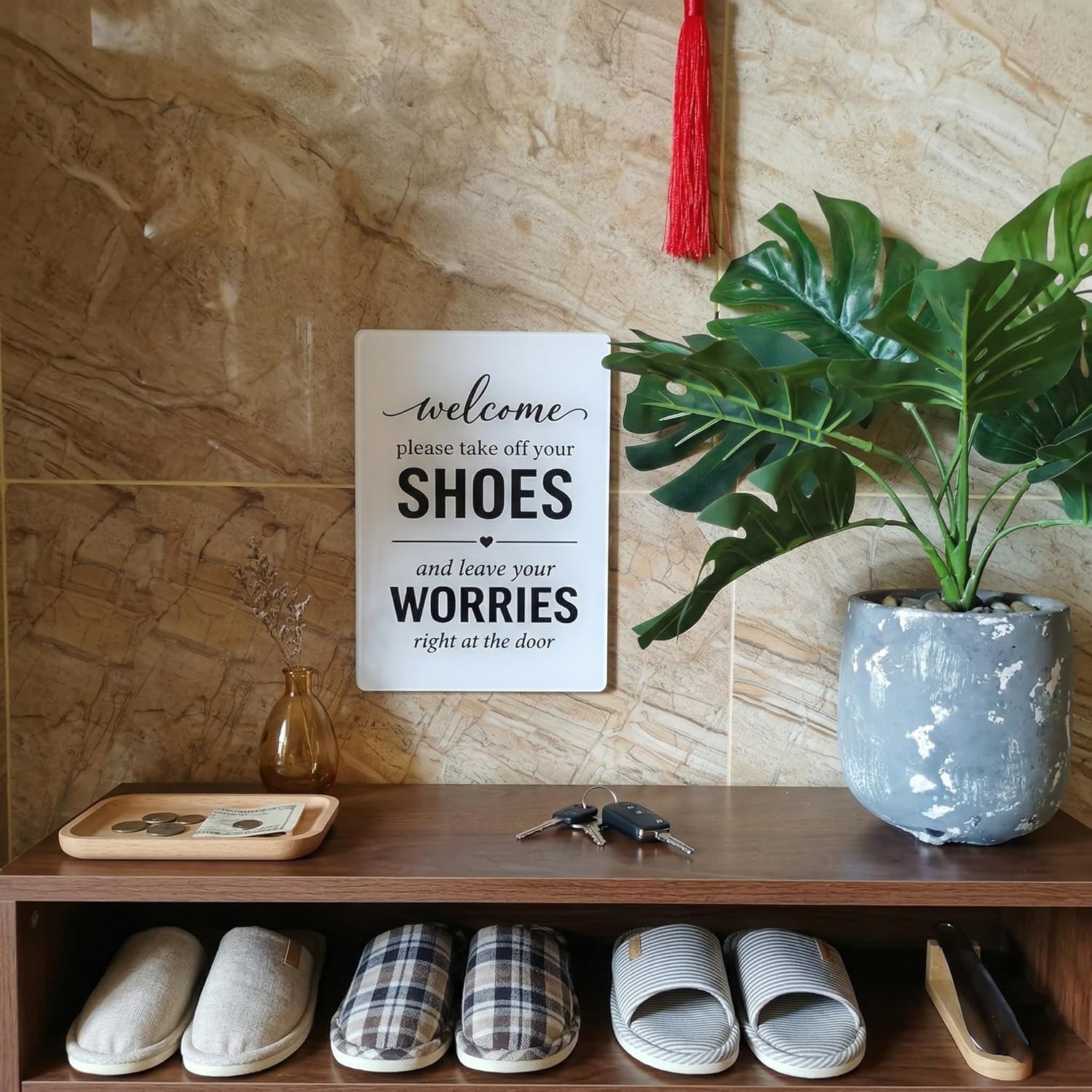 Step into a sanctuary of cleanliness and peace of mind. Imagine a home where the dust of the outside world stays at the doorstep. Our Micchoin "Remove Shoes" sign does more than keep floors spotless; it sets a tone of relaxation and respect. By inviting guests to leave their worries at the door, you create a welcoming atmosphere that prioritizes both hygiene and harmony. Why settle for signs that peel or fade after a month? Common stickers bubble under humidity, and flimsy plastic signs eventually warp. Our solution features a 3mm Rigid Acrylic Shield paired with High-Bond Polymer Adhesive. This industrial-grade backing creates a permanent molecular seal on smooth surfaces, ensuring the sign never shifts or falls—even in high-traffic commercial entryways. Once applied, it becomes a durable fixture of your home. Versatility beyond the front porch. While perfect for modern farmhouse entryways, this elegant plaque excels in Yoga Studios, Professional Clinics, Baby Nurseries, and Daycare Centers. Its minimalist black-and-white aesthetic blends seamlessly with glass doors, polished wood, or painted walls, making it the ideal choice for any space that requires a shoeless environment. Technical Specifications: Material: Grade-A UV-Resistant Acrylic Adhesive: Permanent Industrial-Strength Full-Backing Dimensions: 5 x 7 Inches (Portrait Orientation) Thickness: 3mm (Rigid & Shatter-proof) Content: "Welcome - Please take off your shoes and leave your worries at the door" Installation Note: Due to the extreme adhesive strength, please measure and level your surface before the final application. We are committed to your long-term satisfaction. If your plaque arrives with any defects, we offer a 100% replacement guarantee. Secure your clean space and elevate your home decor with Micchoin today.