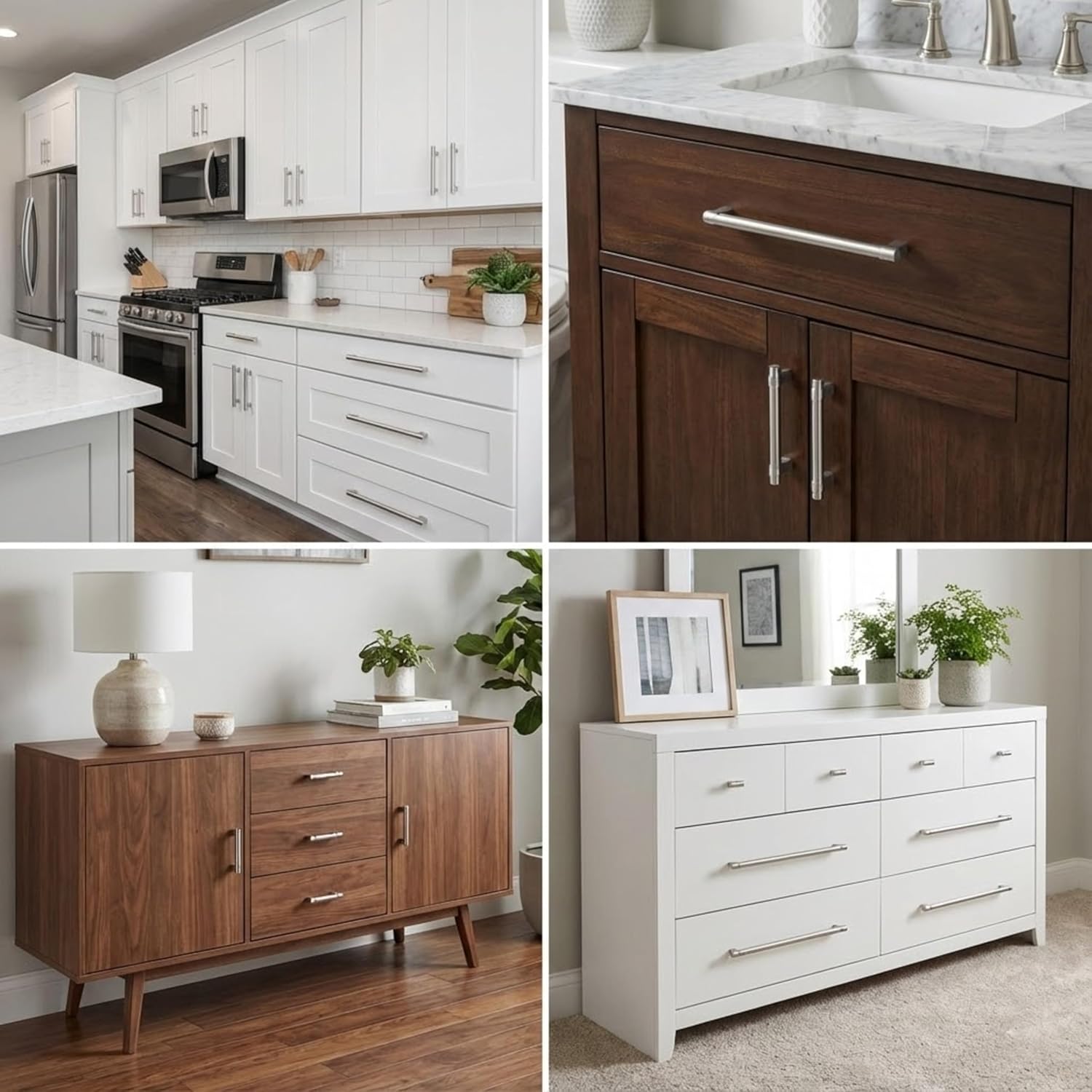 Upgrade your home affordably with the Rok Hardware 5-1/32" (128mm) Hole Centers Brushed Nickel Modern Stainless Steel Cabinet Pull; an easy budget-friendly upgrade that delivers a sleek, high-end look without the premium price. Designed with a contemporary Euro twin tubular bar style, this pull blends effortlessly into kitchens, vanities, bathrooms, laundry rooms, and furniture pieces. Homeowners appreciate the modern elegance and comfortable grip, while contractors value its precise sizing and reliable performance. Crafted from durable 201 stainless steel with sturdy metal posts, this handle offers long-lasting strength you can trust. The brushed nickel finish resists fingerprints and pairs beautifully with nearly any cabinet color or décor from modern to transitional styles. Key Features/Specs: Finish: Brushed Nickel Material: 201 Stainless Steel Center to Center: 128 mm (5-1/32") Overall Length: 153 mm (6-1/32") Handle Diameter: 22 mm (7/8") Projection: 43 mm (1-11/16") Individually Polybagged with 1" (8-32 thread) mounting screws Pulls Style: Modern Installation is simple for DIYers and professionals alike. Each pull is individually polybagged and includes 1" (8-32 thread) mounting screws for a secure, frustration-free fit on standard cabinet holes. Whether you're refreshing one room or renovating an entire home, Rok delivers the hottest home improvement hardware at unbelievable prices, empowering you to transform your home with confidence.
