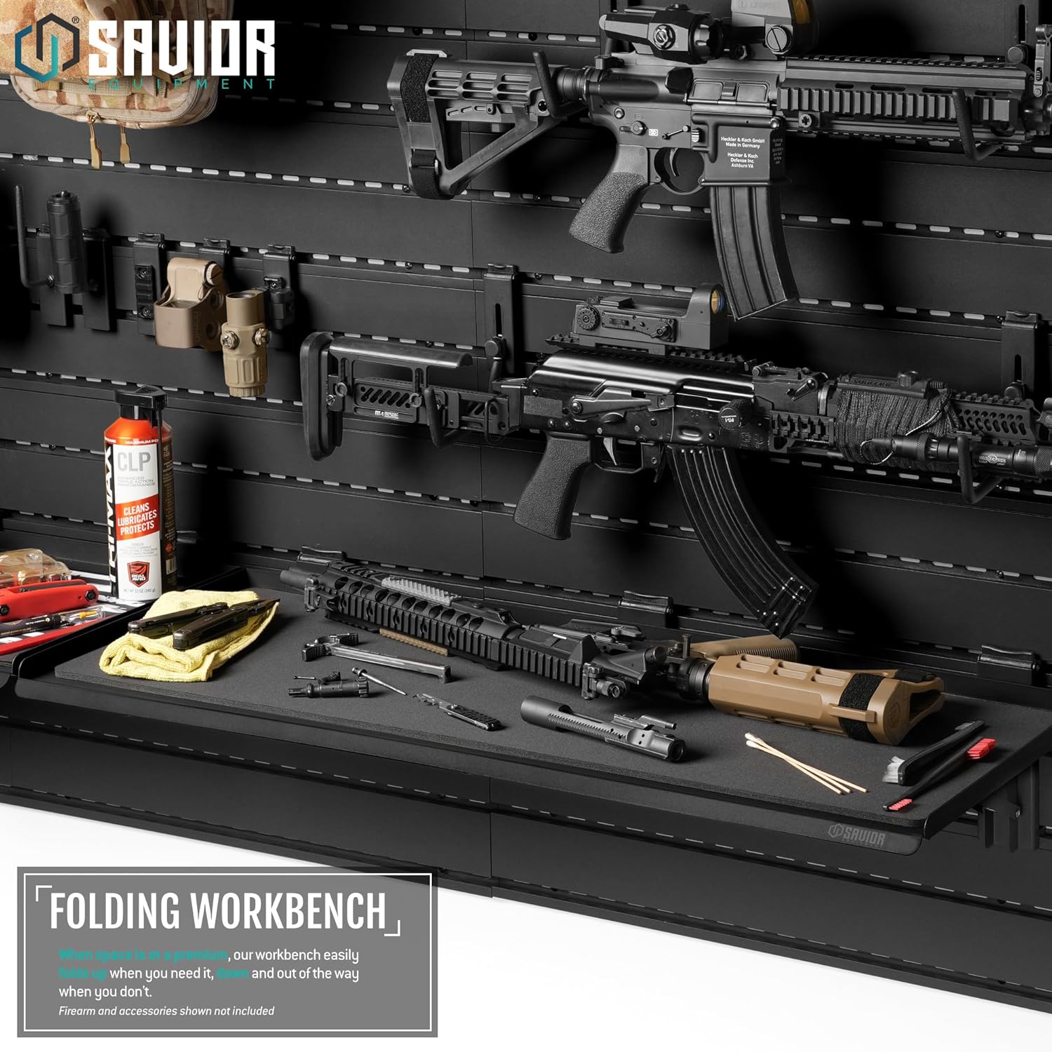 Savior Equipment Wall Rack System Heavy-Duty Steel Folding Table Workbench Shelf Collapsible Wall Mount Hanger, Modular Firearms Gun Wall Gear Accessories Organizer