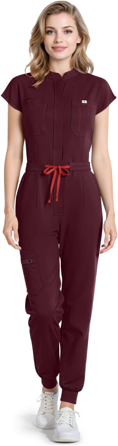 Product Name: Eadflie Stand-Up Collar Scrub Jumpsuit for WomenBrand: Eadflie - Dedicated to Professional & Comfortable Medical WorkwearTarget Users: Ideal jumpsuit scrubs for women and unisex use, suitable for various medical professionals including nurses, doctors, veterinarians, dentists, and clinical staff.Size Range: S, M, L, XL, 2XL, 3XL (Standard sizing for a snug yet flexible fit)Pocket Quantity & Details: 7 Total Pockets (Core Advantage of This Scrubs Jumpsuit for Women)- 2 Top Pockets: 1 stacked with large & small compartments (for notepads/lip balm), 1 divided into narrow pen pocket & regular pocket (for thermometers/pens)- 5 Pant Pockets: 2 front pockets (for gloves), 2 back pockets (for personal items), 1 secure zippered pocket (for keys/ID cards/cash)Core Design: Stand-Up Collar & One-Piece Construction- Stand-up collar: Maintains a neat, professional silhouette, different from loose traditional scrub collars- One-piece design: Eliminates the hassle of matching separate tops & pants, enables quick wear - perfect one piece scrubs for women for busy shiftsFabric Composition: 72% Polyester + 21% Rayon + 7% Spandex (Premium Material for Scrubs for Women Set)- Skin-friendly & sweat-wicking: Keeps skin dry and cool during long work hours- Moderate stretch: Enhances mobility for bending, reaching, and kneeling- Wrinkle-resistant & fade-proof: Easy to clean and maintains shape after frequent launderingCraftsmanship: Consistent stitch spacing with high-quality sewing thread, ensuring durability and no fraying - this scrub jumpsuit stands up to daily medical useApplicable Scenarios: Hospitals, clinics, veterinary offices, dental clinics, and all medical workplaces. This scrub jumpsuit for women provides reliable coverage and comfort for every task.Why Choose Eadflie: We focus on details that matter to healthcare staff. This jumpsuit scrubs for women combines professionalism, practicality, and comfort - your trusted workwear partner.