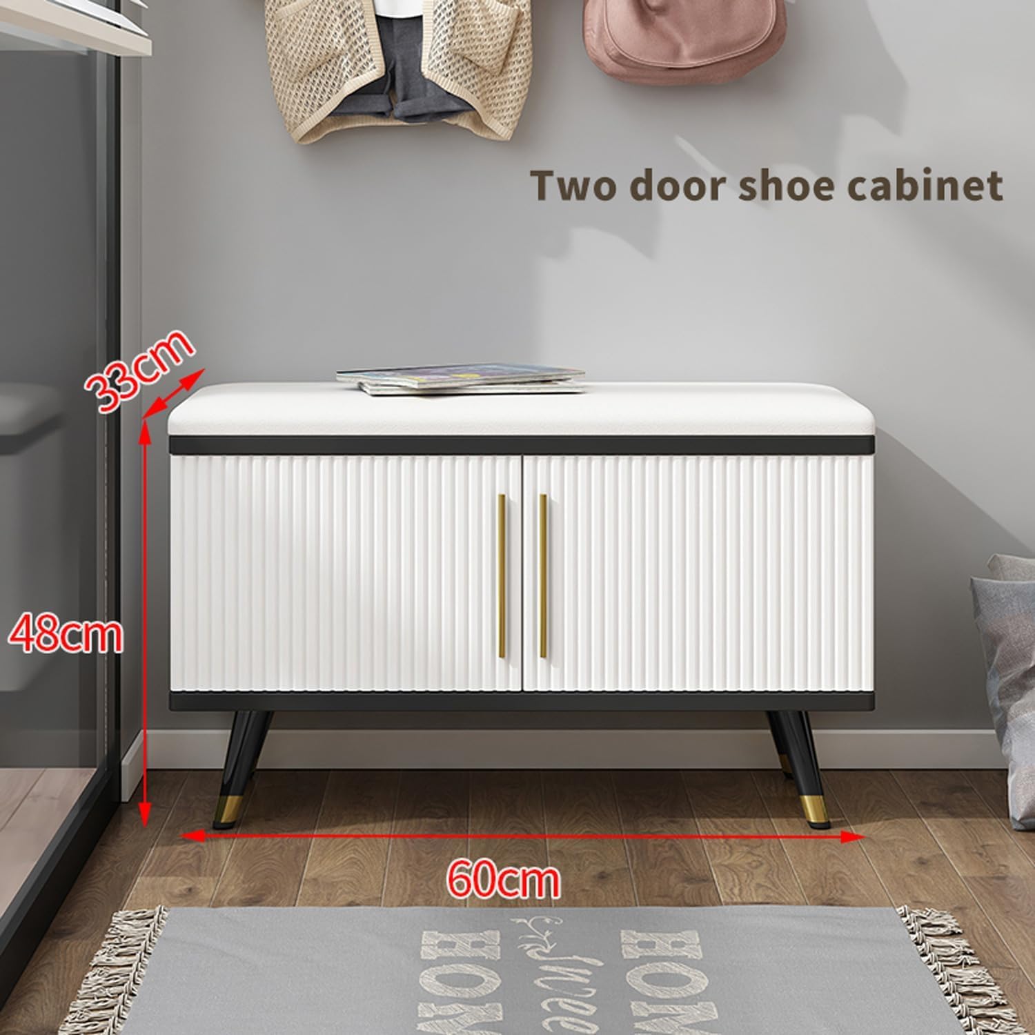 Enhance your living space with our Modern Rectangular Ottoman, a stylish addition that serves both as a centerpiece and practical storage solution. This Elegant Shoe Storage Bench seamlessly combines functionality with aesthetics, making it perfect for entryways, small apartments, and condos. Designed to maximize space, our shoe storage bench provides ample seating while keeping your area nized and clutter-free. The contemporary oak finish paired with a PU leather top cushion not only elevates your home decor but also adds a touch of sophistication to any room. Key Features: - Chic design with a oak finish and a comfortable PU leather cushion - Versatile use as both a bench and a shoe cabinet, ideal for multi-functional spaces - Spacious interior for storing shoes and small items, keeping your living area tidy - Scratch-resistant surface for easy cleaning and long-lasting durability - Compact design perfect for optimizing storage in limited spaces Package Includes: 1 x Shoe Rack Bench 1 x Instruction Manual Please note: Colors may vary slightly due to screen and lighting differences. All dimensions are manually measured and may differ by 1-3 cm. Transform your space with our stylish storage solution that blends elegance and practicality, making everyday nization a breeze.