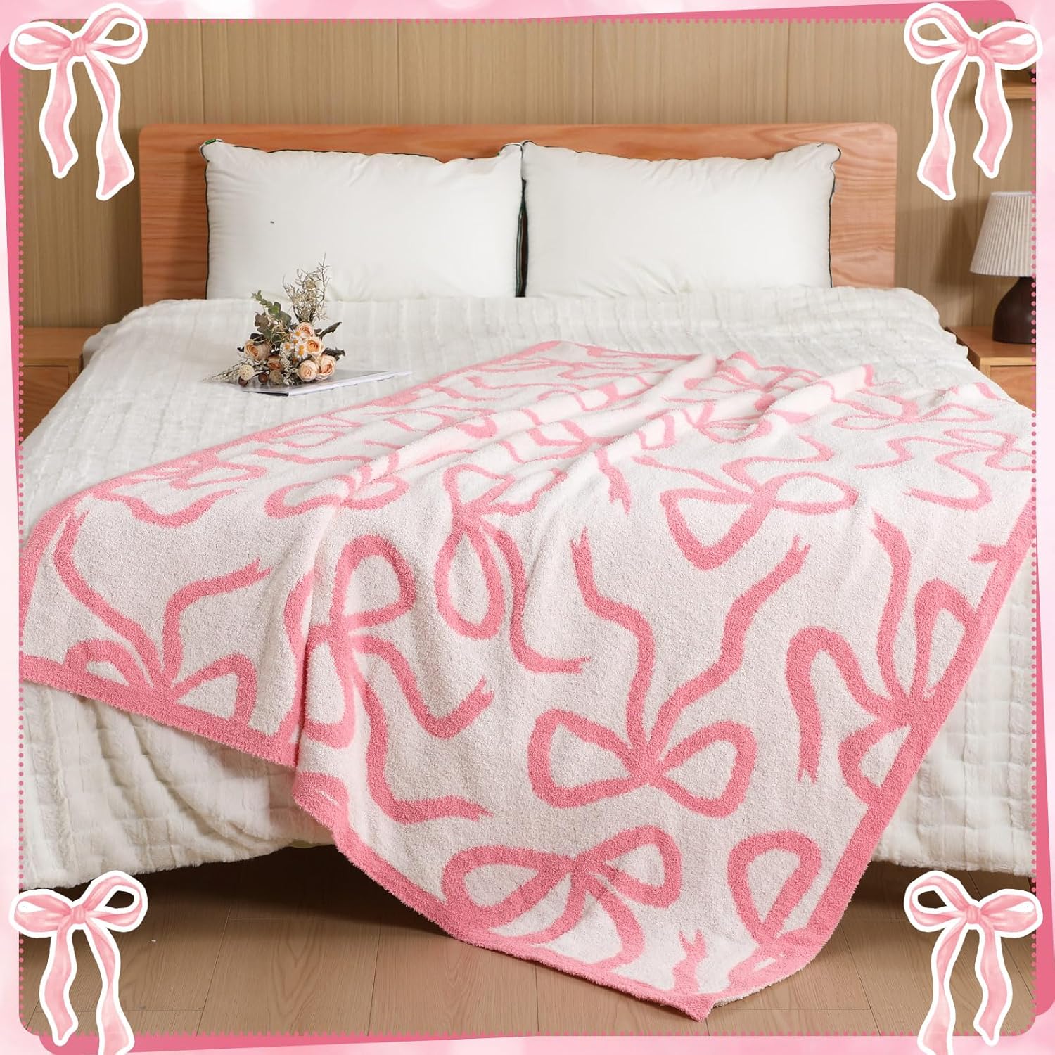 Features: Aesthetic appeal: Adds a touch of cuteness to your room decor, enhancing the ambiance with its adorable design, suitable for creating a cozy and inviting space. Gift ready for special occasions: Ideal for gifting on Christmas, Valentine's Day, birthdays, or any special moment to family, partners, or loved ones, spreading warmth and love. Specifications: Material: microfiber fabric Color: pink Size: about 50 x 60 inches Package includes: 1 x Pink bow blanket Manual measurement, please allow slight errors on size. The color may exist a slight difference due to different screen displays.