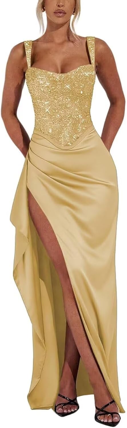 Welcome to RunaCelle store! We have many years of experience in making prom dresses, bridesmaid dresses, wedding dresses, formal dresses,homecoming dresses, evening dresses. Fabric: Sequin Prom Dress with Slit Feature:Mermaid Corset Neckline: Off the Shoulder Closure: Lace Up Back, Drawstring Sleeve Length: Sleeveless Dress Length:floor Length 1. Occasion: Whether you are dressing it for wedding, beach, reception, prom, quinceanera,a wedding party, reception, rehearsal, bridesmaid, evening party, homecoming, graduation, birthday, holiday, dance, anniversary, engagement, elopement or any other occasions, this dress will be your lovely partner. 2. Don't find suitable standard size and colour? Don't worry, because we can custom size free for you. Please provide us below measurements to help us make the dress fit you better. please complete following details: 1. Bust:____ inch or ___ cm. 2. Waist:____ inch or ___ cm. 3. Hips:____ inch or ___ cm. 4. Hollow to floor(with shoes):____ inch or ___ cm. 5. Arm Hole:____ inch or ___ cm. 6. Shoulder width:____ inch or ___ cm. 7. Arm length:____ inch or ___ cm. 3. Tips: Please do choose the size referring to our size chart. As all the pictures are taken by actural item, color differences may exist among different display screens. Any suggestions