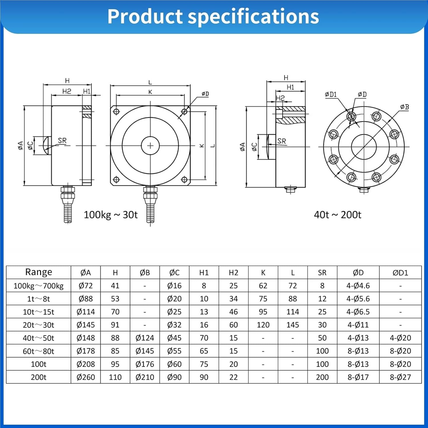 Sensors==========Capacity : 0-8TSpoke Load Cell Weight Sensor,Test Tension and Compression Force Weight Pressure,Adapts HX711 Range 1-8T✅ Material: Durable stainless steel construction✅ Application: Perfect for industrial scales & heavy machinery ✅ Accuracy: High-precision measurement for error-free results✅ For Professionals: Bulk pricing available for distributors & large orders✅ Customizable: Supports customization for specific load requirements