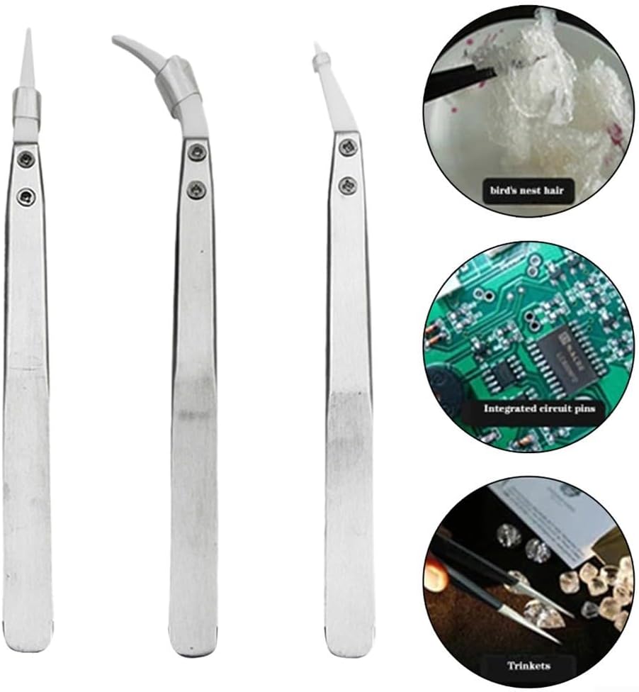 Product description Description:*Zirconia ceramic for precision tips.*for resistivity 10E12Ohm.* , high temperature, wear and resistant.*Ceramic replaceable tips.*Convenient to use.* in use.Specification:*Material: Stainless Steel + Ceramic*Optional Type: Little Curved Tweezer, Big Curved Tweezer, Straight Tweezer*Color: Silver+White*Length: approx. 135-140mm*Quantity: 1pcPackage included:x Ceramic Tweezer Manufacturer Contact Information no