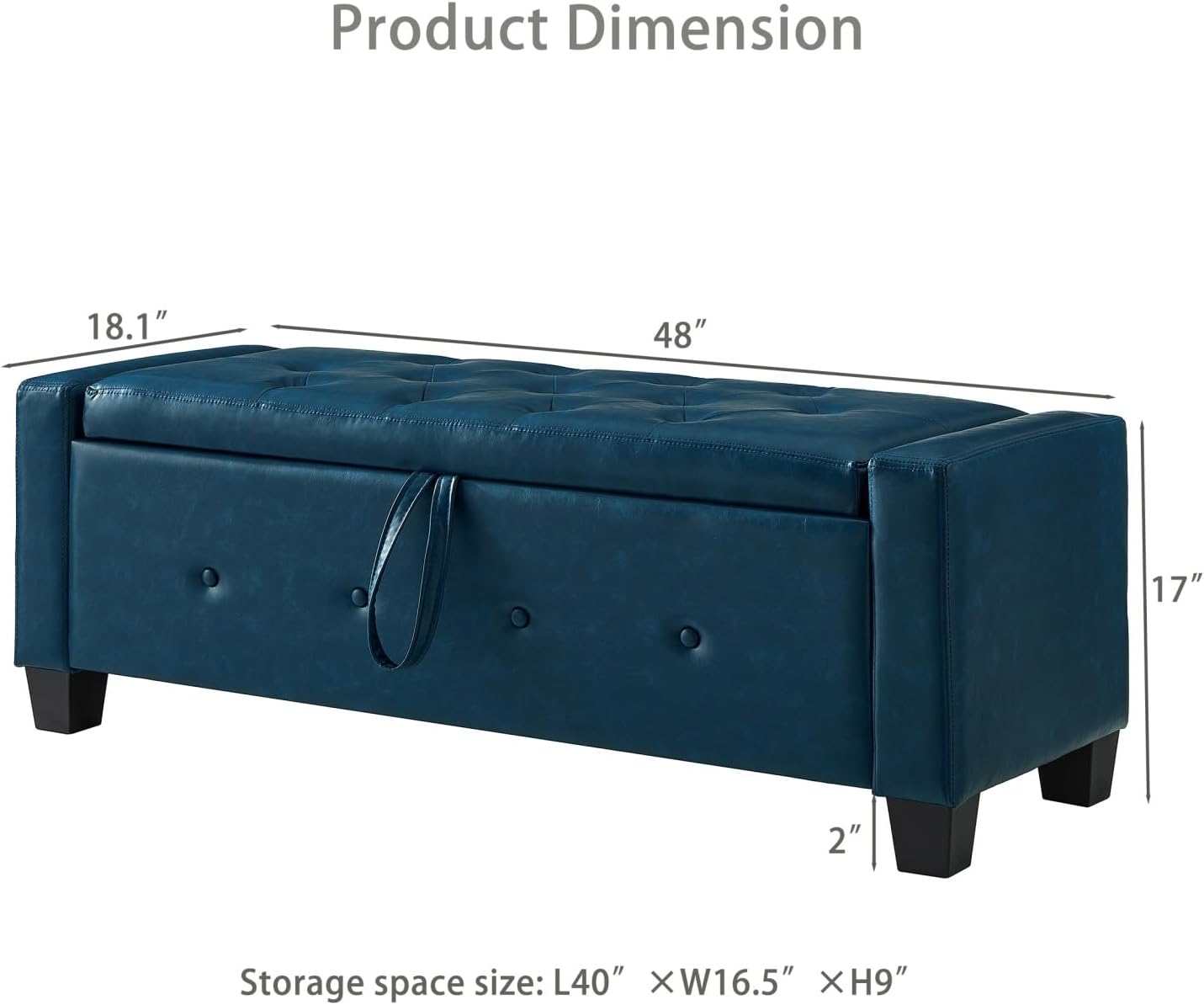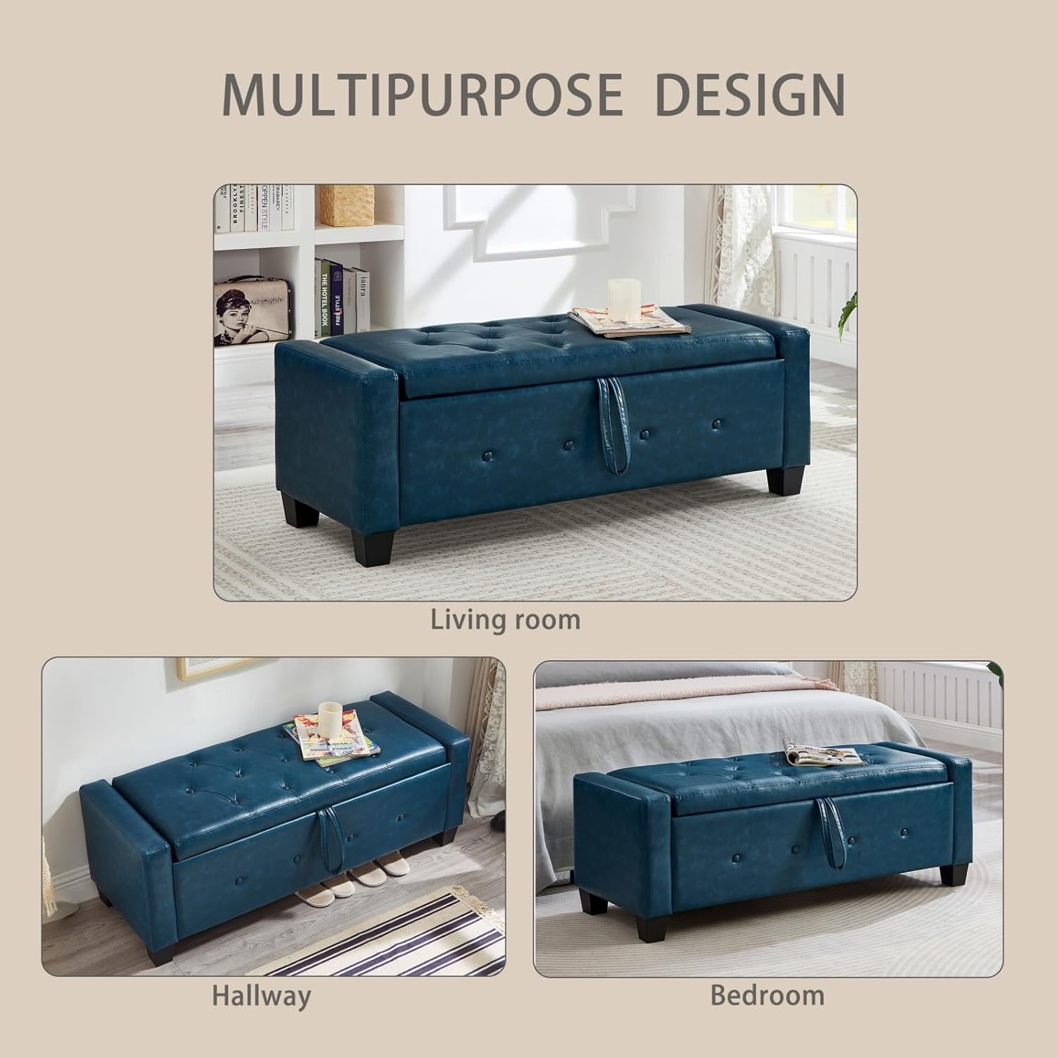Storage, Bench for Bedroom,Living Room,Hallway, Upholstered Tufted Faux Leather PU Ottoman Blue Blue PU