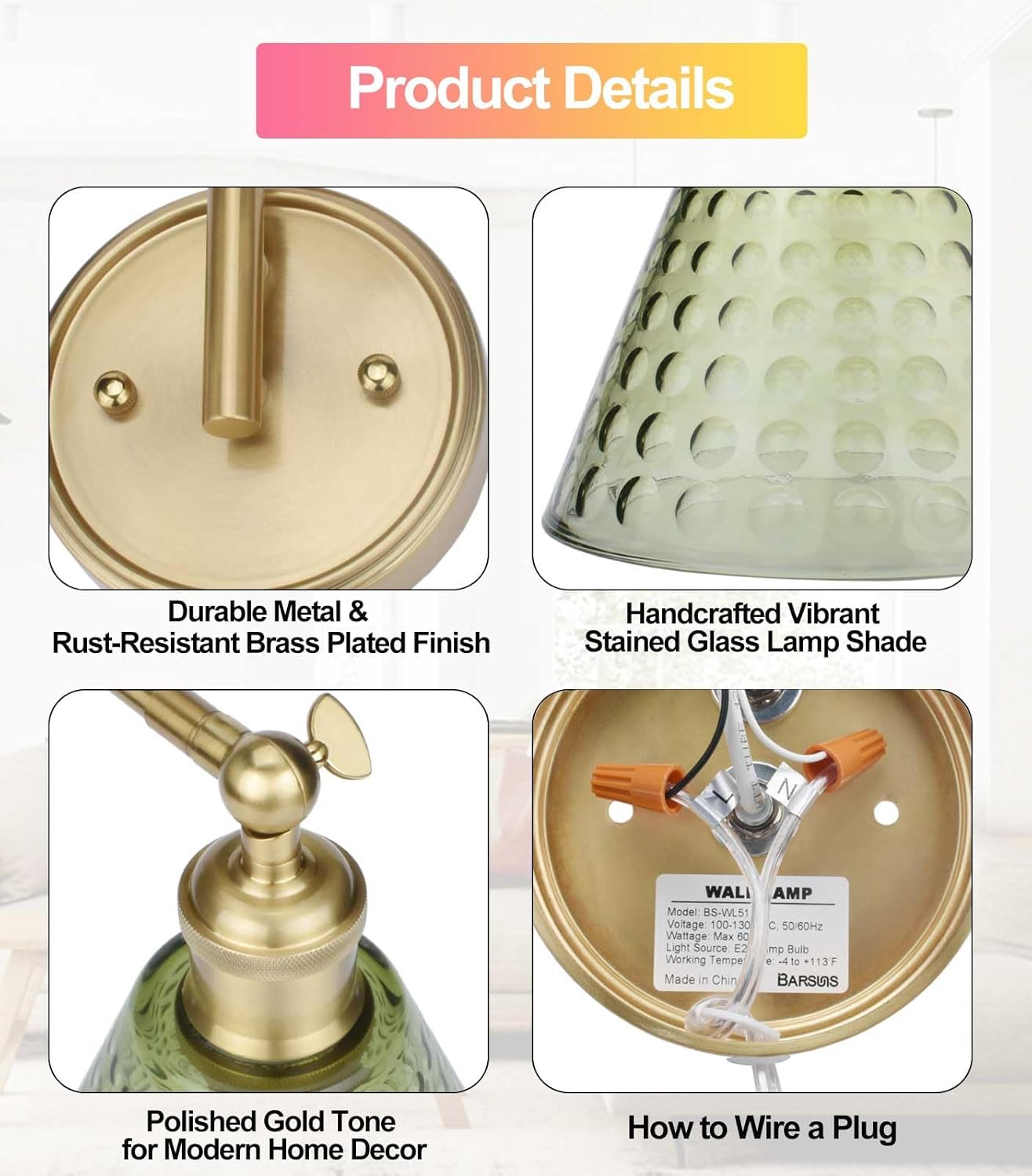 | Color | Gold Lamp Body & Green Shade |