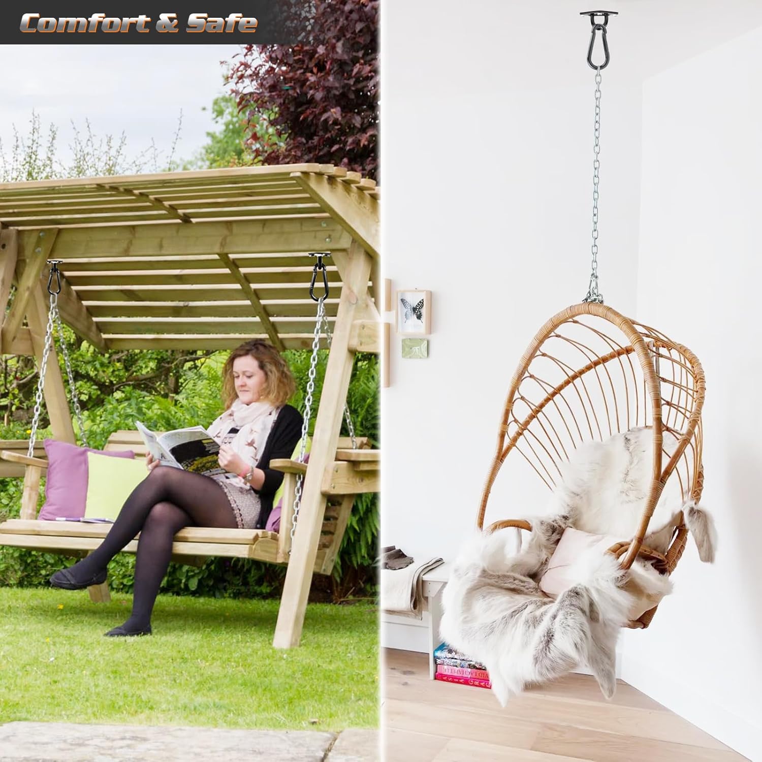 Soft EVA Swing Seat with 66 Inch Anti-Rust ChainAbout Product:The swing set includes all the necessary hardware and clear instructions for easy setup. Whether it's in the backyard, playground, or any outdoor space, this swing set is the perfectaddition to provide hours of fun for your little ones.With a weight capacity of 300 pounds, it is built to withstand the active play of older children, ensuring long-lasting use.Installation is quick and hassle-free, allowing for immediate enjoyment. Package:1 * Fully Assemble Swing Seat2 * Chains2 * Extra Snap Hooks2 * Extra Hanging StrapsGAMKII Swing HangerAbout Product:Experience unrivaled quality with the GAMKII Hammock Hanging Kit.Crafted from 304 stainless steel, our kit boasts rhombic hook discs and 10MM spring hooks coated for durability. With a robust 2204lbs loading capacity, it ensures stability for all relaxation activities. Package:2 * M10 pad eye plates2 * spring hooks8 * Expansion Screw Tubes8 * expansion screws