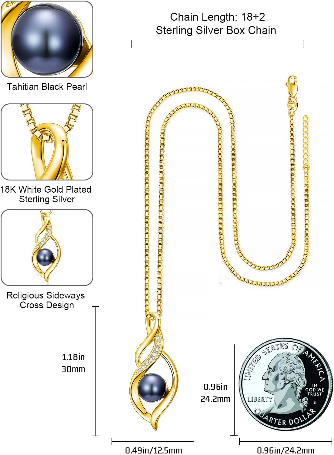 Tahitian Black Pearl AAAA 18K Gold Plated Sterling Silver Pendant Necklace for Women Wife Mom Girlfriend Valentine Her Jewelry Gift for Anniversary Birthday Christmas